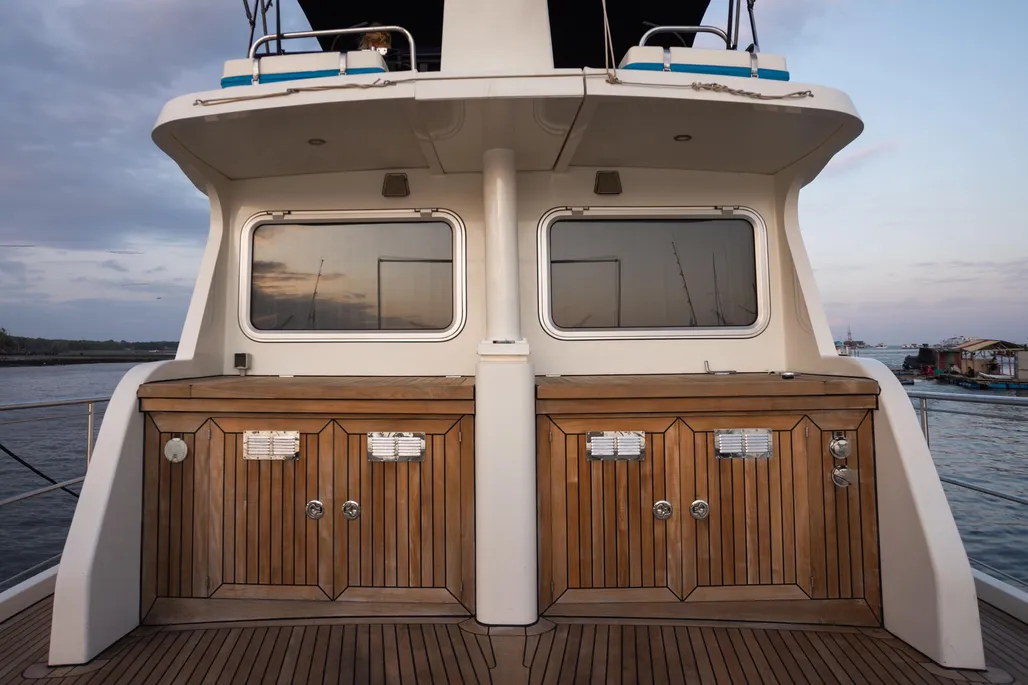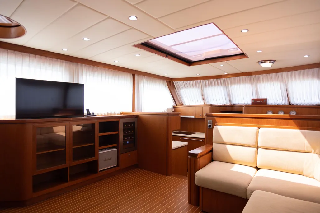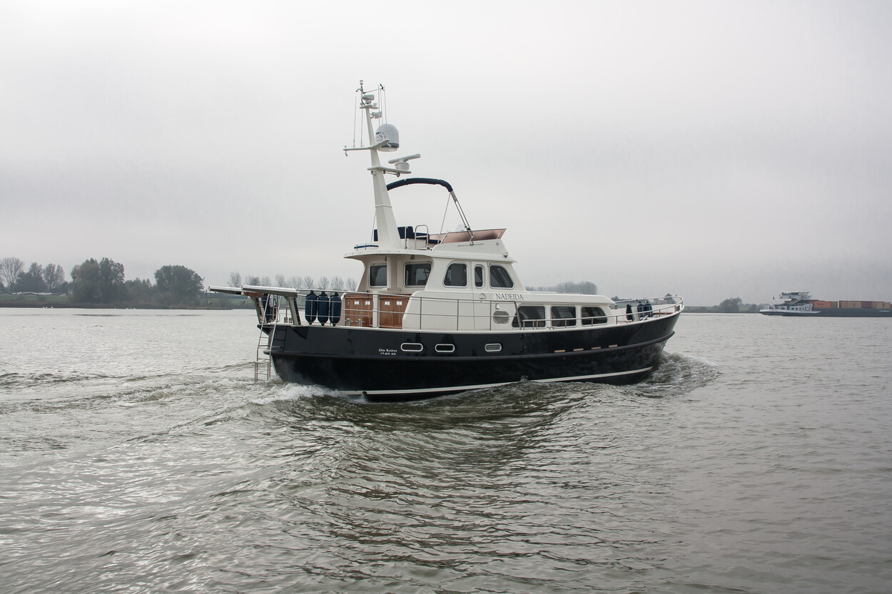 Zeer zeewaardig en stoere kotter gebouwd bij jachtwerf De Alm. Een uniek aspect van dit jacht is de flybridge, wat haar nog veelzijdiger maakt. Compleet uitgerust met hydraulische boeg- en hekschroef, airconditioning, centrale verwarming, compleet Raymarine navigatie apparatuur, Naiad stabilisatoren, twee hydraulische ankerlieren met 100 mtr. RVS ketting, een grote generator en meer! Prachtig afgewerkt interieur in teak, met 3 hutten en twee aparte badkamers. Prijs is exclusief btw.