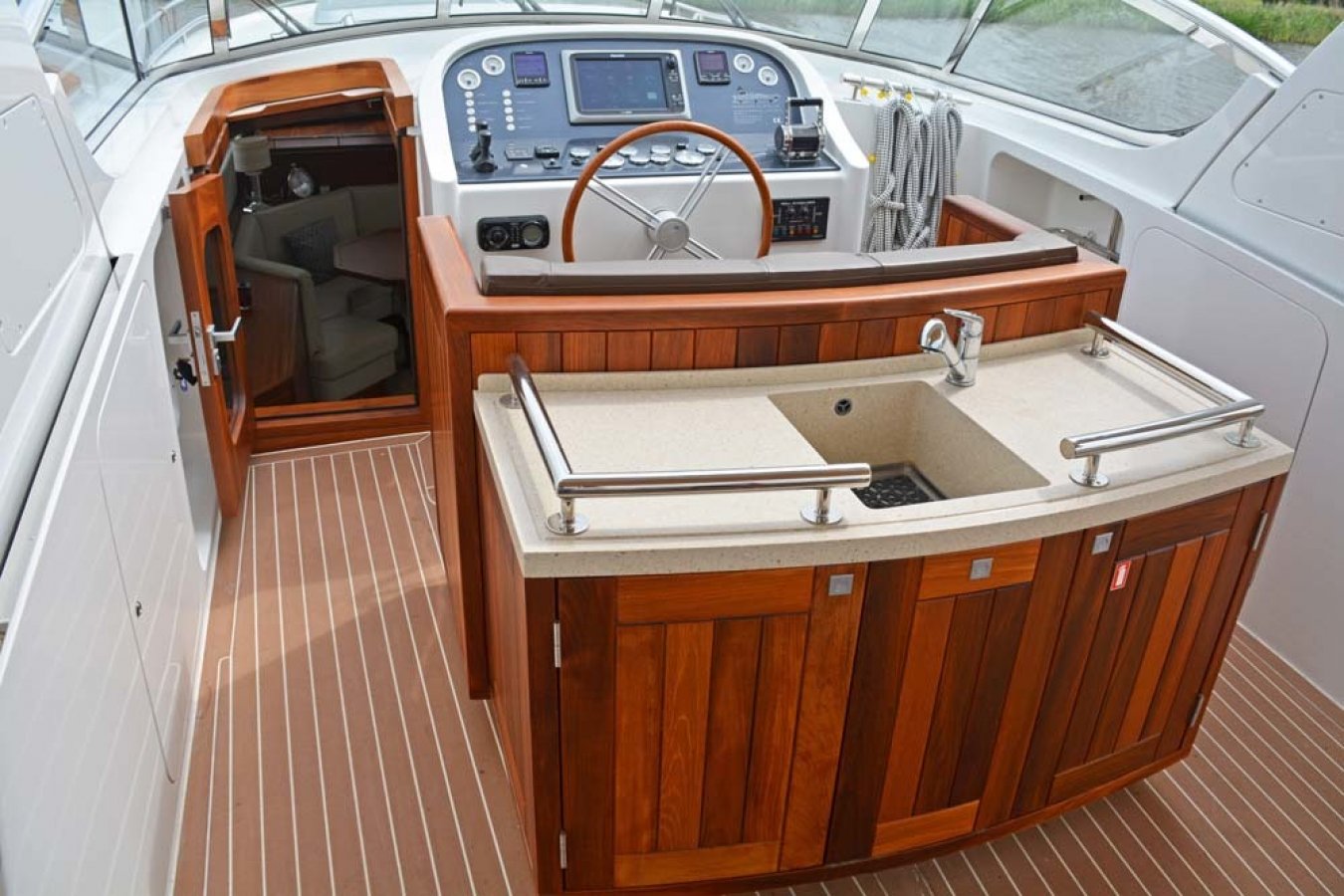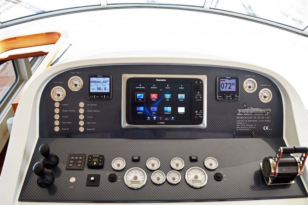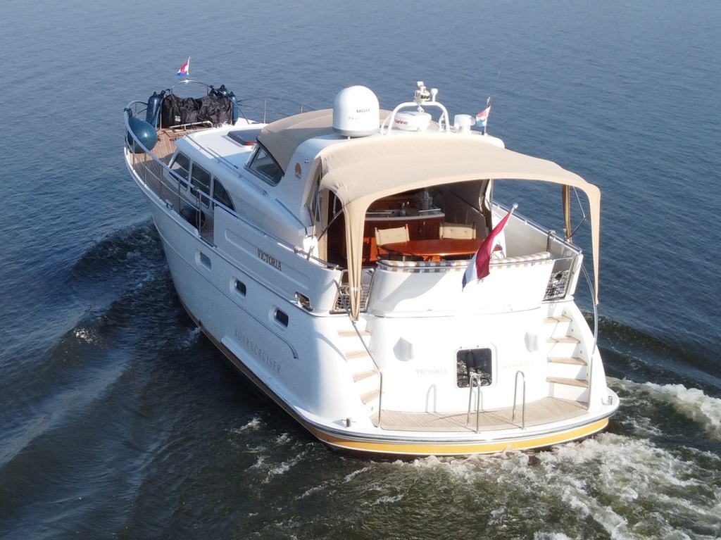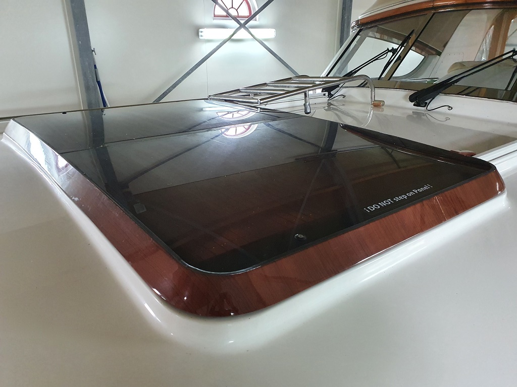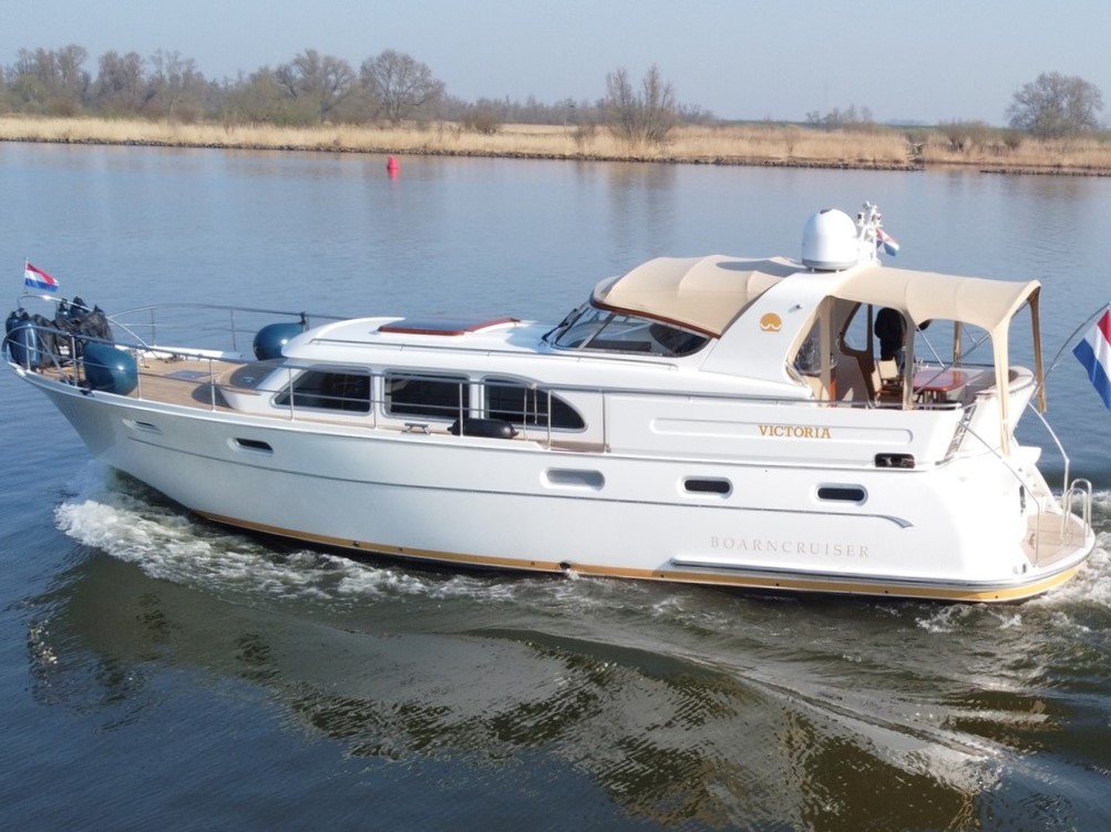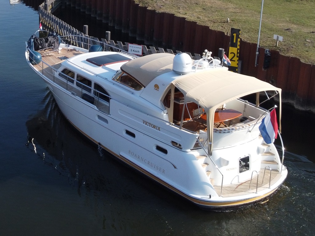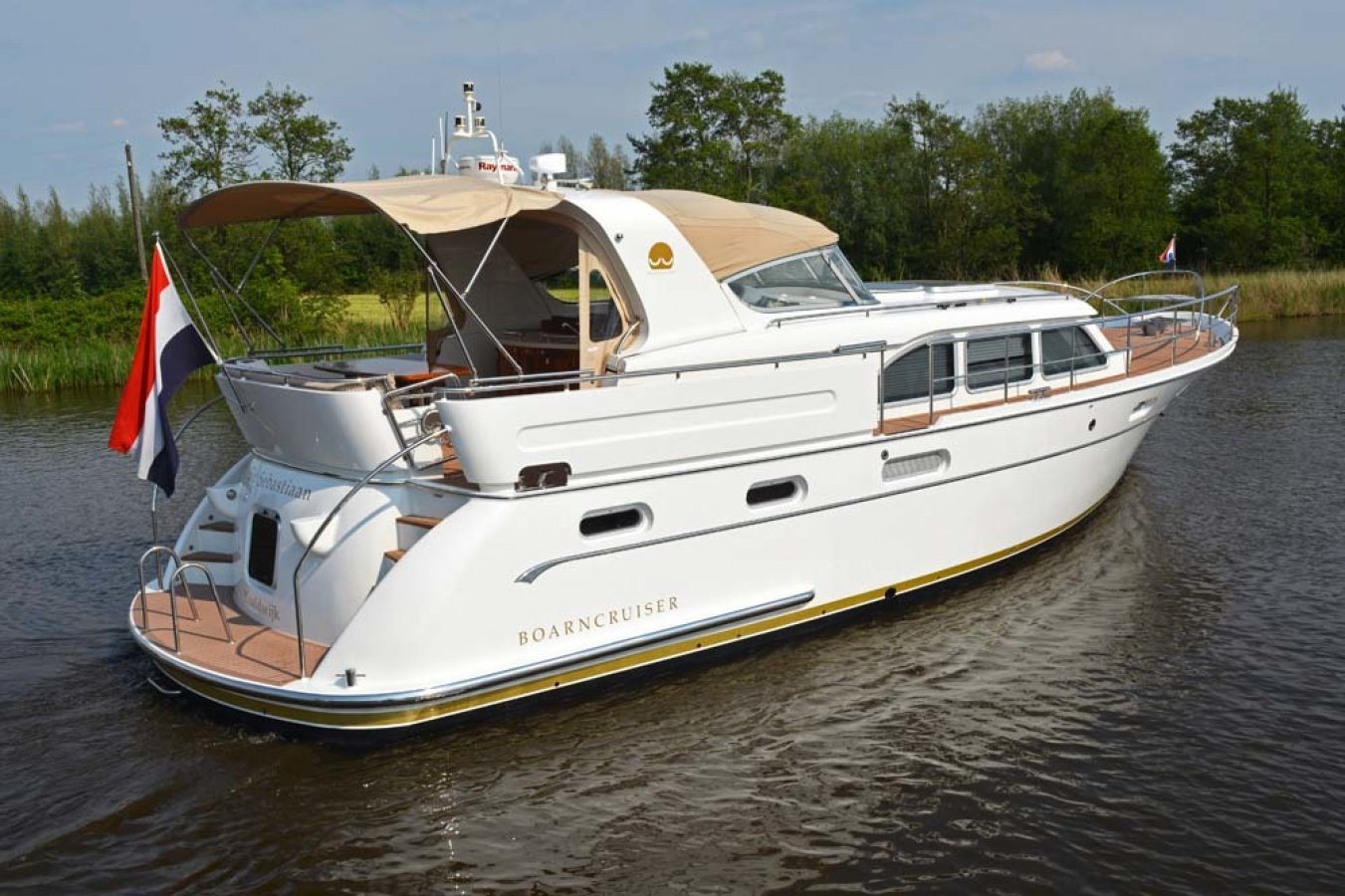 Prachtig gelijnd, sierlijk zeewaardig rondspantjacht (CE-A) met waaiersteven. Een goed voorbeeld van de Nederlandse kwaliteits-jachtbouw! Voorzien van alle denkbare opties, zoals BNO geluidsinstallatie, stabilisatoren, airco, afstandsbediening voor motoren- boeg en hekschroef, prachtig RVS-werk rondom waaronder een zware ovale railing en el. davits (2025). Ze heeft een fantastisch en ruim achterdek met 2-pers. stuurbank en een vaste comfortabele U-bank met grote tafel, een buitenkeuken met o.a. een koelkast, vanaf het achterdek komt u via dubbele draaitrappen op het zwemplateau. Dankzij haar el. klapbare radarbeugel is de doorvaarhoogte slechts 3,40 mtr. De cabrio werd vernieuwd in 2024, de accu’s zijn van 2026 en recent is ze voorzien van nwe antifouling (2026). Deze Boarncruiser heeft elk jaar binnen overwinterd en is door haar huidige eigenaar altijd tot in de perfectie bijgehouden. Ready to go!!
