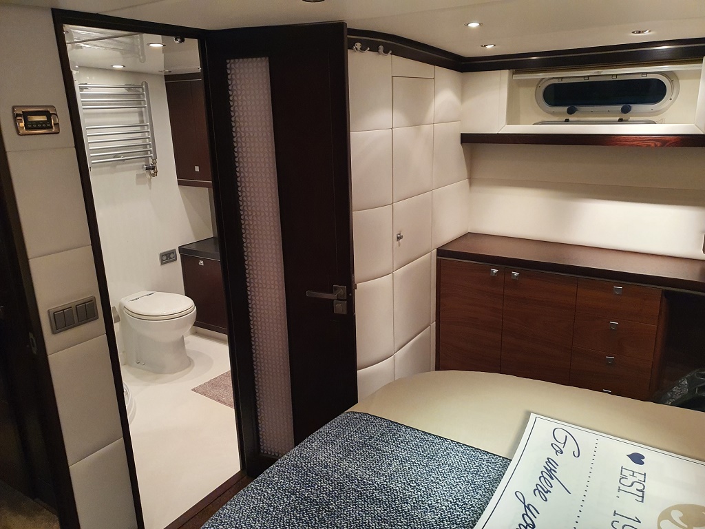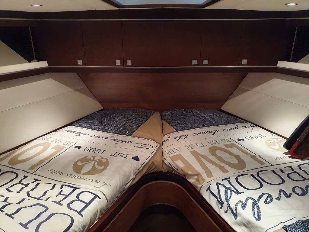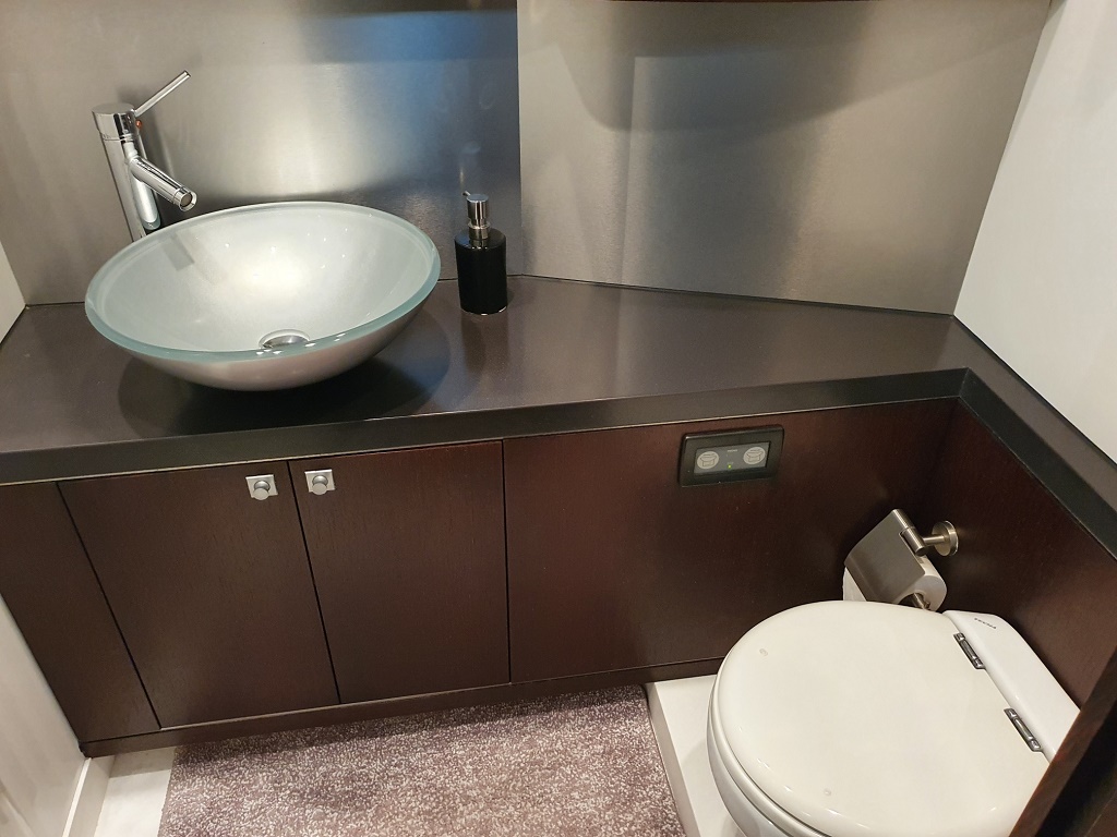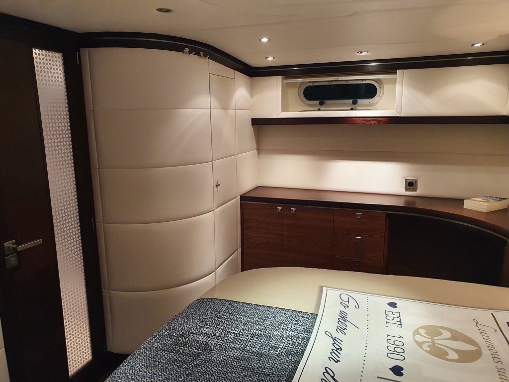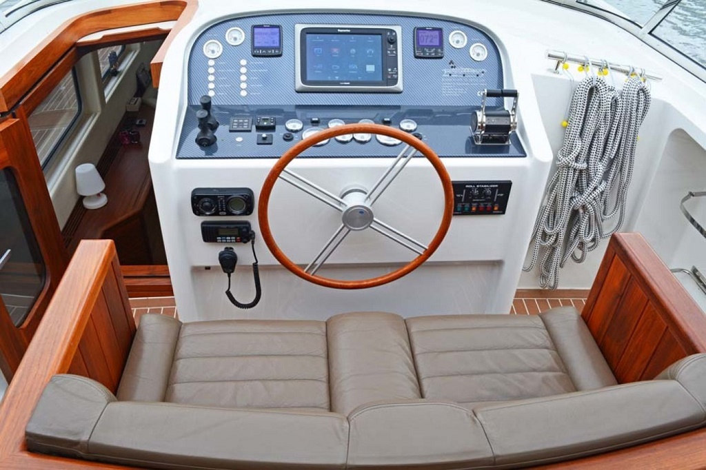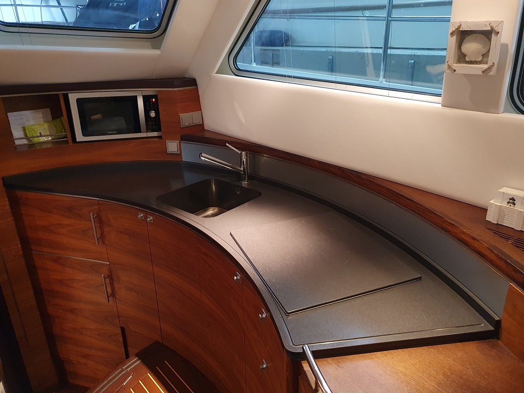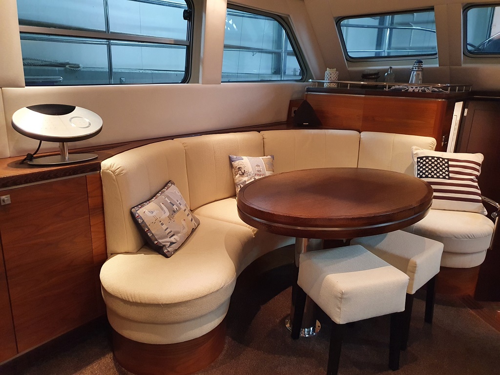 Prachtig gelijnd, sierlijk zeewaardig rondspantjacht (CE-A) met waaiersteven. Een goed voorbeeld van de Nederlandse kwaliteits-jachtbouw! Voorzien van alle denkbare opties, zoals BNO geluidsinstallatie, stabilisatoren, airco, afstandsbediening voor motoren- boeg en hekschroef, prachtig RVS-werk rondom waaronder een zware ovale railing en el. davits (2025). Ze heeft een fantastisch en ruim achterdek met 2-pers. stuurbank en een vaste comfortabele U-bank met grote tafel, een buitenkeuken met o.a. een koelkast, vanaf het achterdek komt u via dubbele draaitrappen op het zwemplateau. Dankzij haar el. klapbare radarbeugel is de doorvaarhoogte slechts 3,40 mtr. De cabrio werd vernieuwd in 2024, de accu’s zijn van 2026 en recent is ze voorzien van nwe antifouling (2026). Deze Boarncruiser heeft elk jaar binnen overwinterd en is door haar huidige eigenaar altijd tot in de perfectie bijgehouden. Ready to go!!