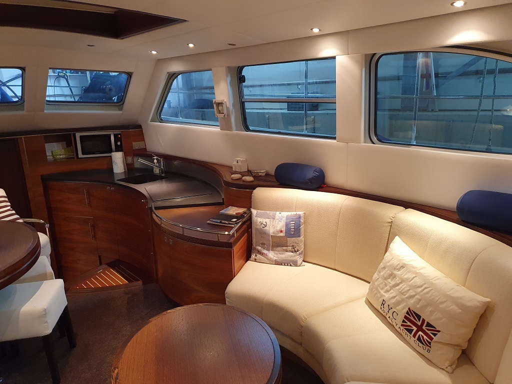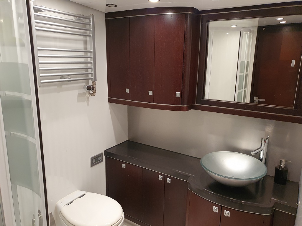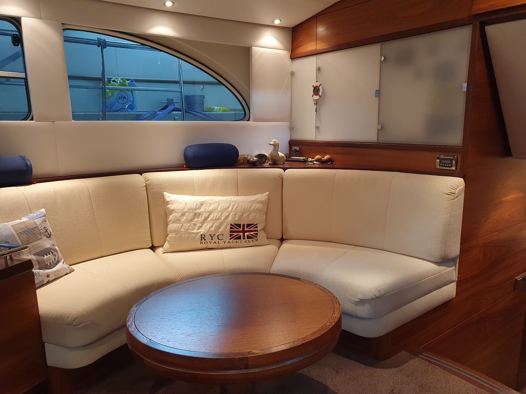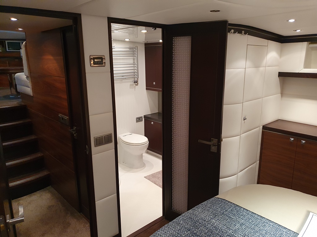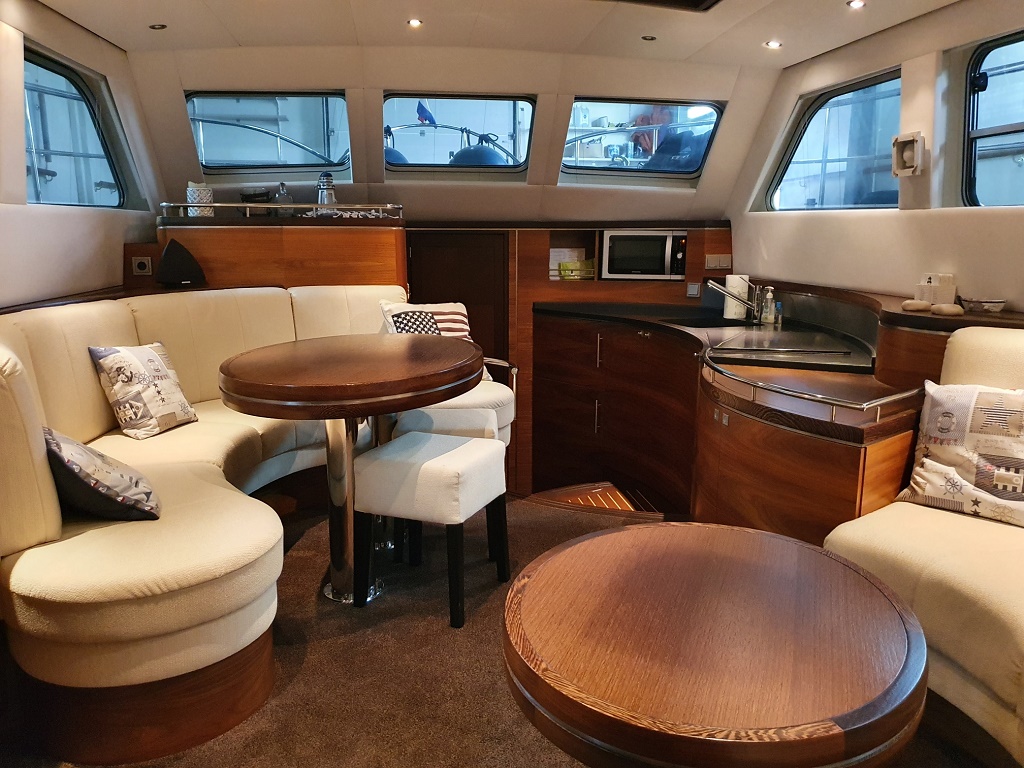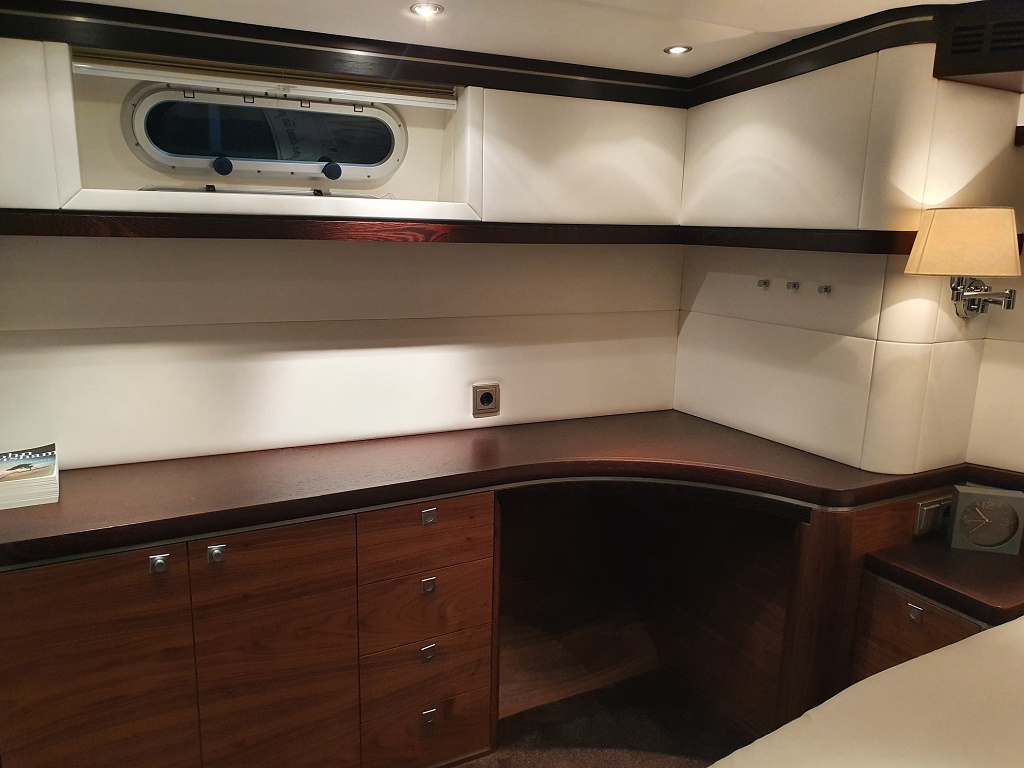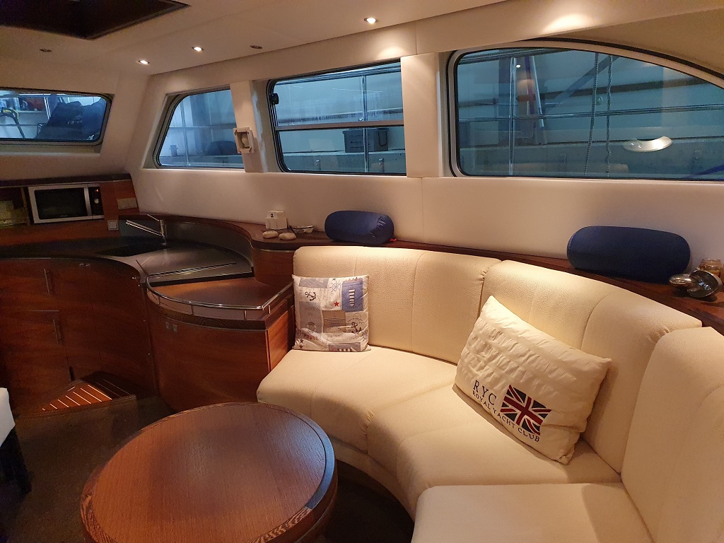 Prachtig gelijnd, sierlijk zeewaardig rondspantjacht (CE-A) met waaiersteven. Een goed voorbeeld van de Nederlandse kwaliteits-jachtbouw! Voorzien van alle denkbare opties, zoals BNO geluidsinstallatie, stabilisatoren, airco, afstandsbediening voor motoren- boeg en hekschroef, prachtig RVS-werk rondom waaronder een zware ovale railing en el. davits (2025). Ze heeft een fantastisch en ruim achterdek met 2-pers. stuurbank en een vaste comfortabele U-bank met grote tafel, een buitenkeuken met o.a. een koelkast, vanaf het achterdek komt u via dubbele draaitrappen op het zwemplateau. Dankzij haar el. klapbare radarbeugel is de doorvaarhoogte slechts 3,40 mtr. De cabrio werd vernieuwd in 2024, de accu’s zijn van 2026 en recent is ze voorzien van nwe antifouling (2026). Deze Boarncruiser heeft elk jaar binnen overwinterd en is door haar huidige eigenaar altijd tot in de perfectie bijgehouden. Ready to go!!