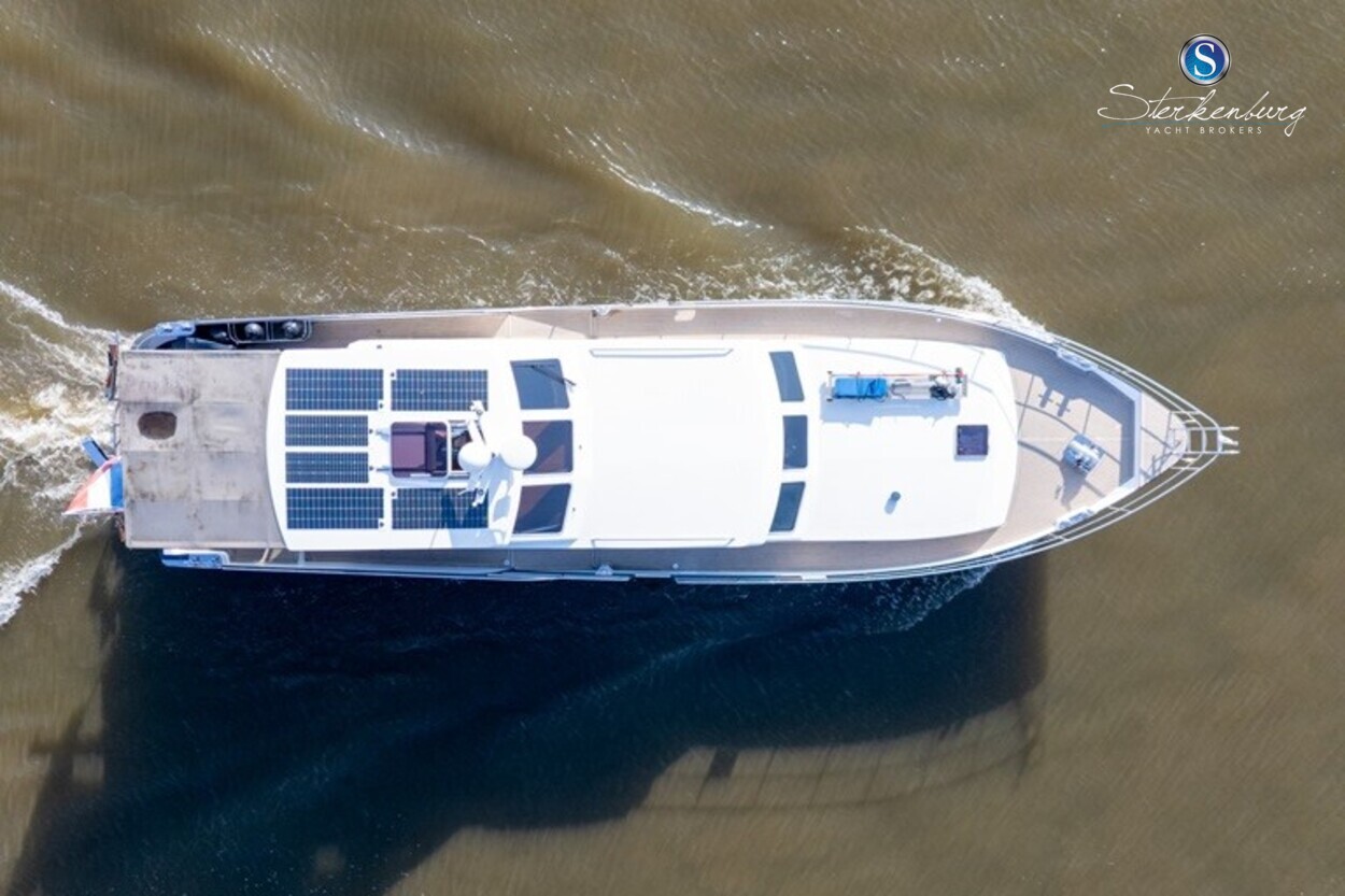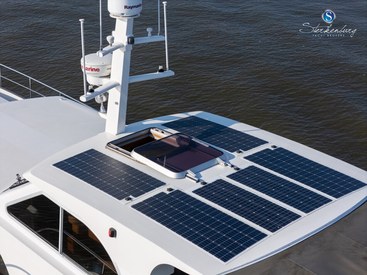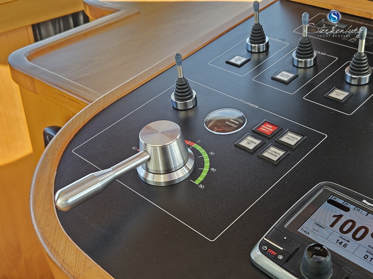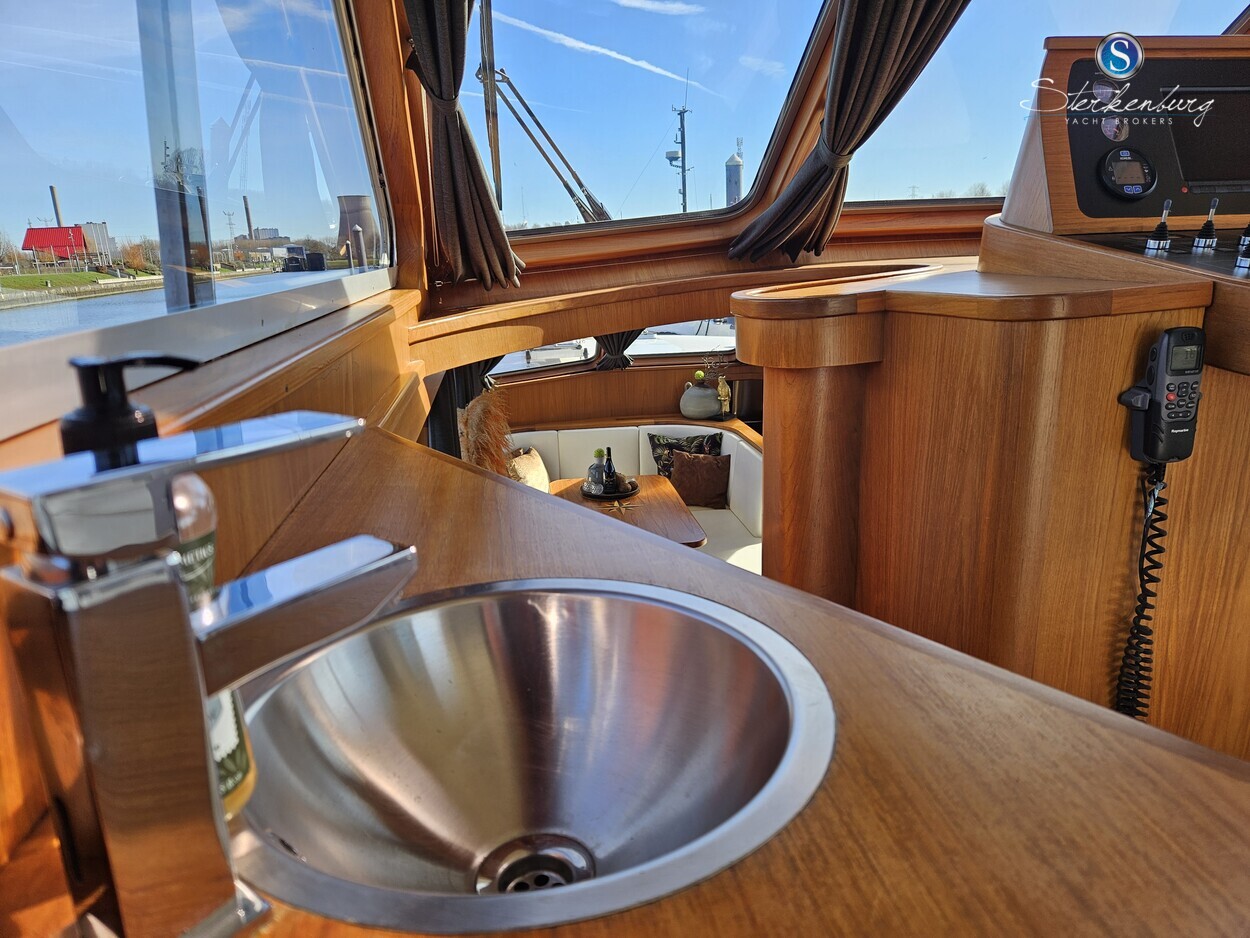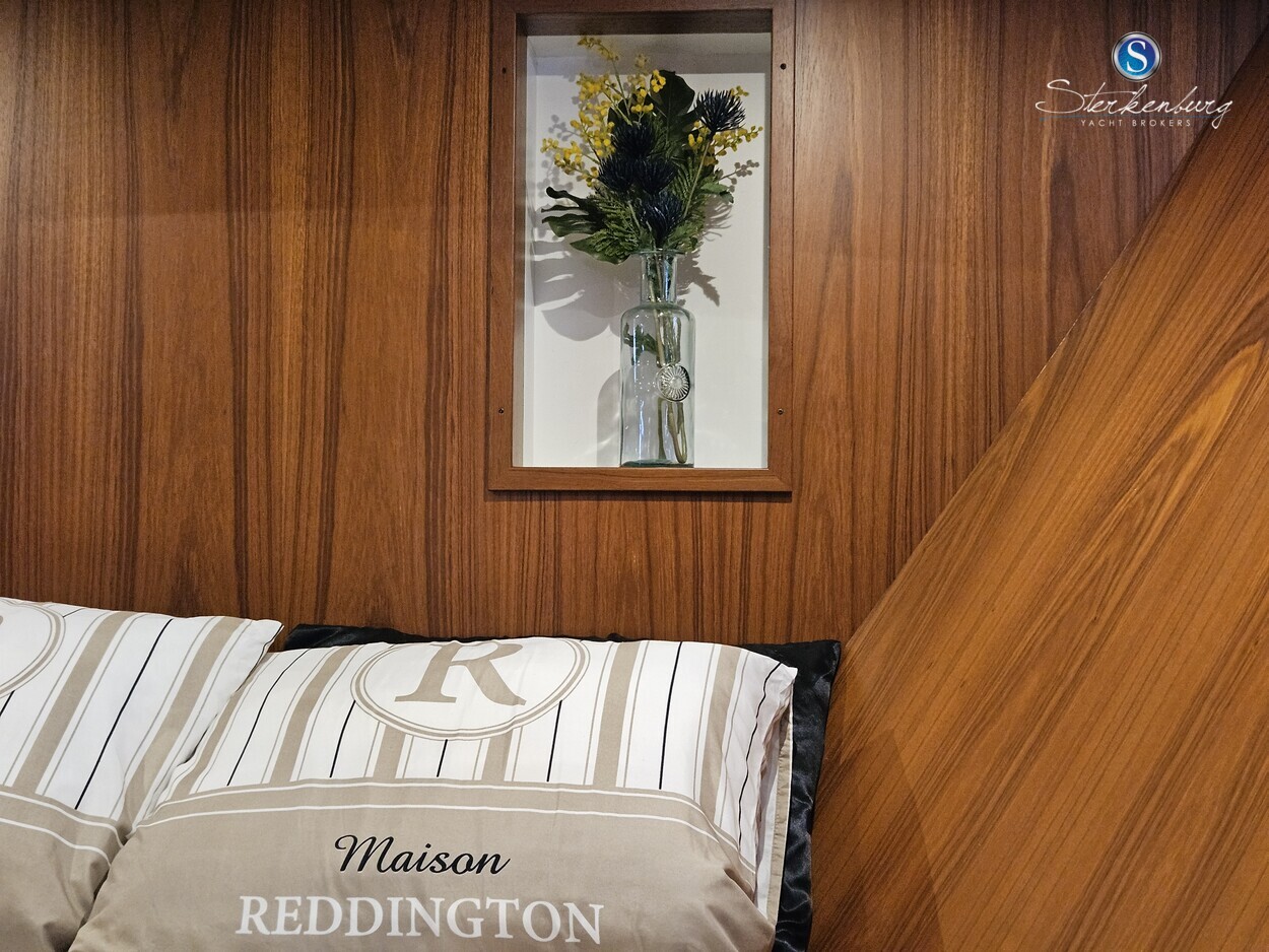 O.a. voorzien van dubbel stuurwerk, 2 spudpalen, achteruitkijk camera, zonnepanelen, hydr. kraan voor bijboot etc,. etc. De ruime stahoogte geeft een verrassend ruimtelijk effect,haar ruime achterdek heeft een comfortabele vaste bank. Haar sterke hydraulische (proportionele) boeg- en hekschroef maken het schip ook bij sterkere wind eenvoudig te manouvreren.