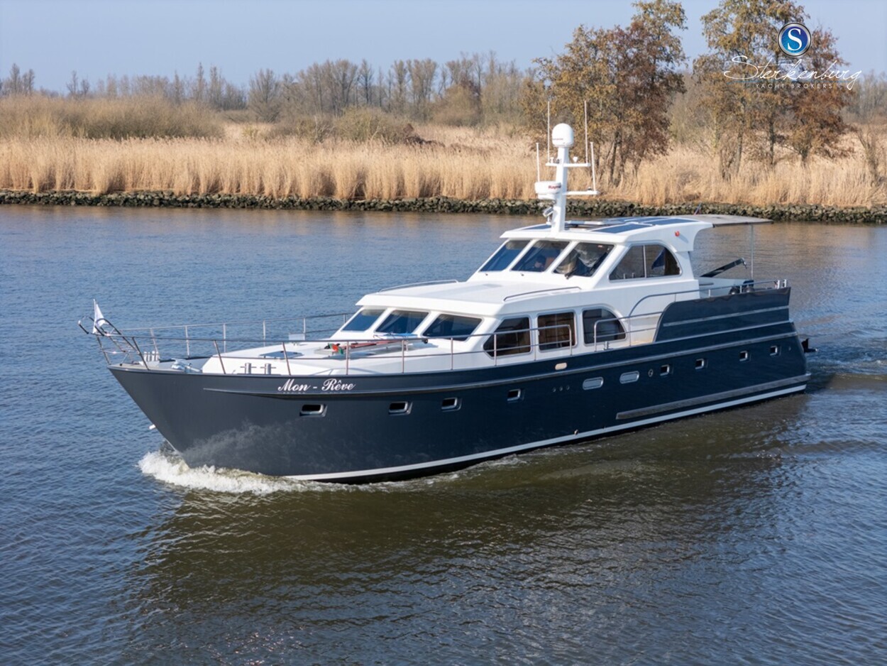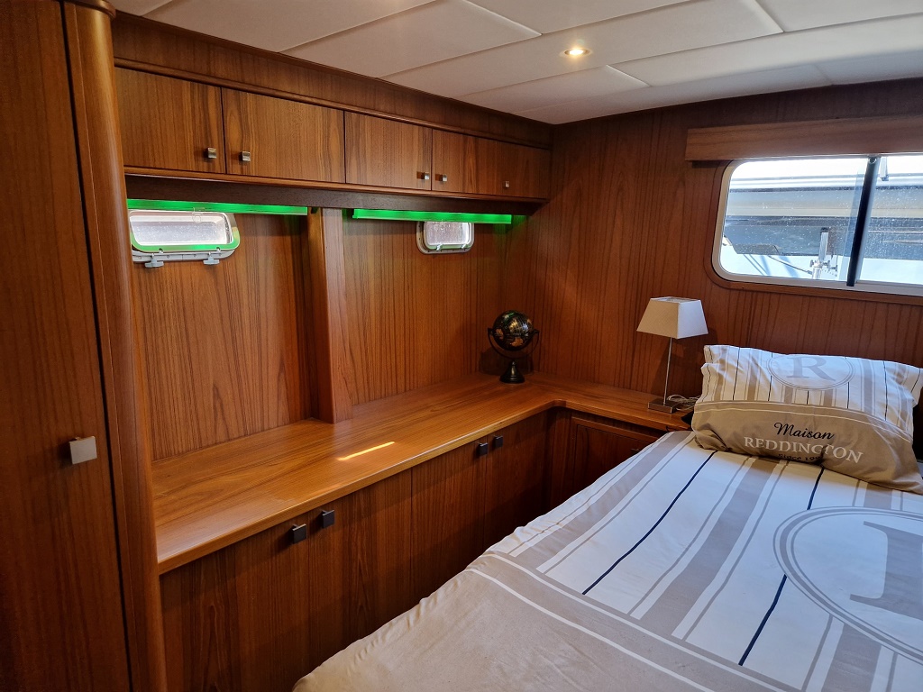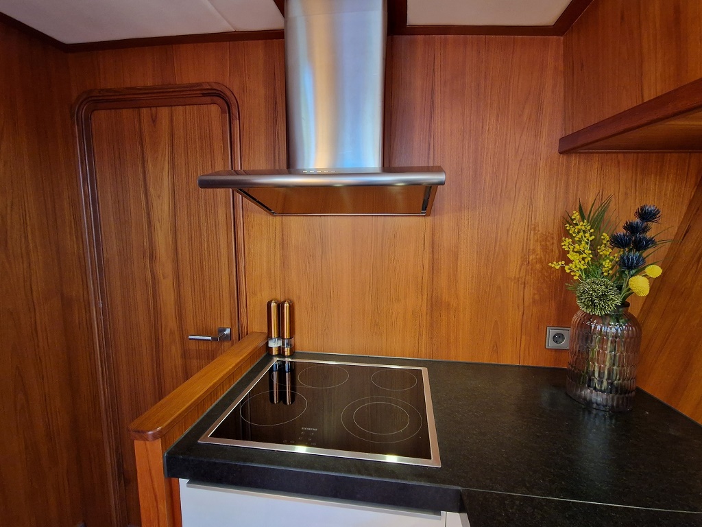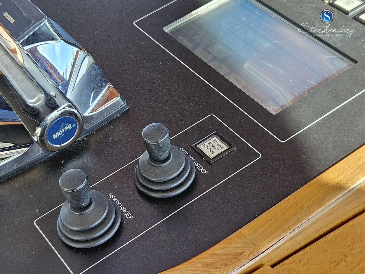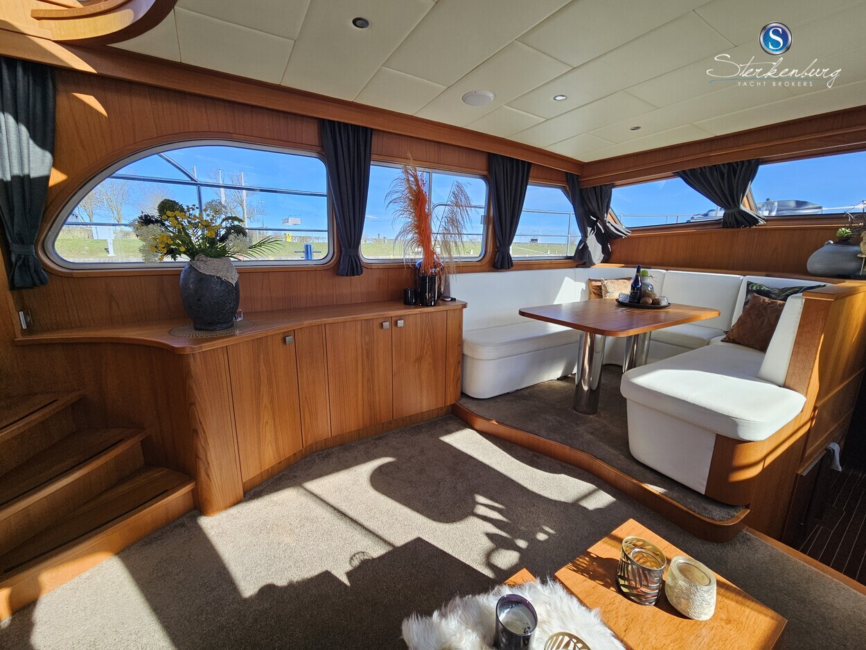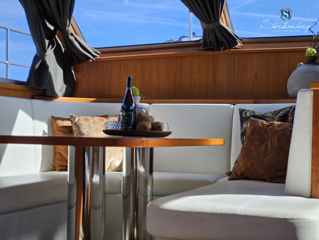 O.a. voorzien van dubbel stuurwerk, 2 spudpalen, achteruitkijk camera, zonnepanelen, hydr. kraan voor bijboot etc,. etc. De ruime stahoogte geeft een verrassend ruimtelijk effect,haar ruime achterdek heeft een comfortabele vaste bank. Haar sterke hydraulische (proportionele) boeg- en hekschroef maken het schip ook bij sterkere wind eenvoudig te manouvreren.