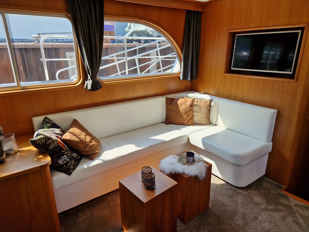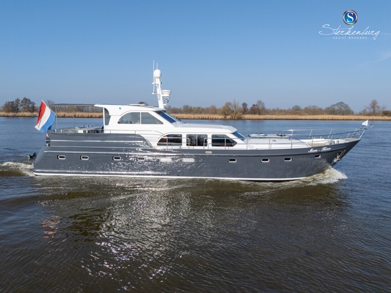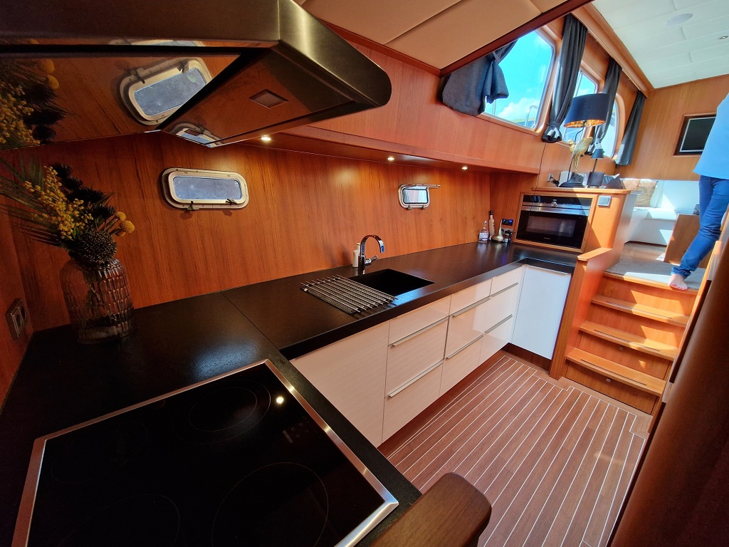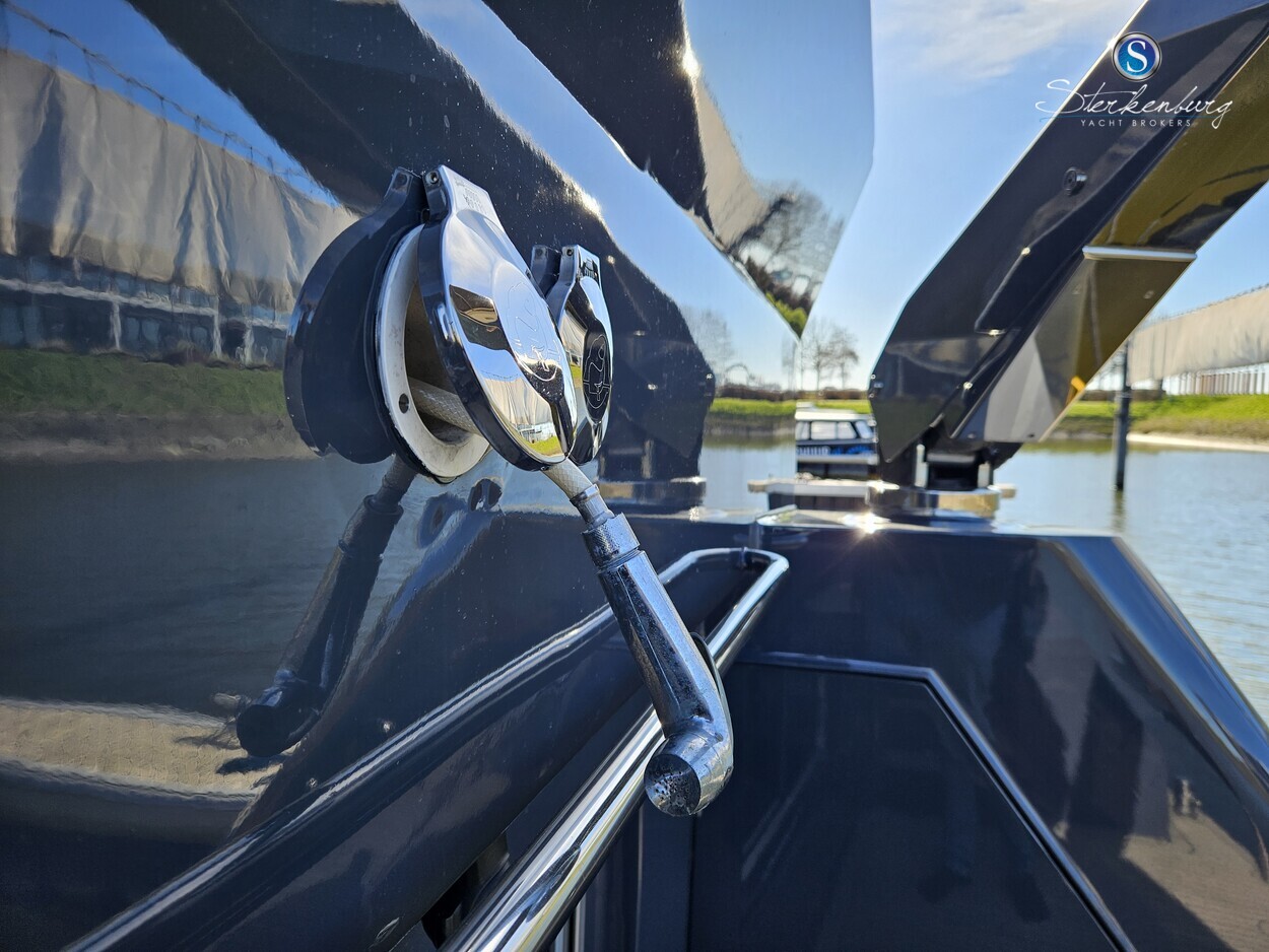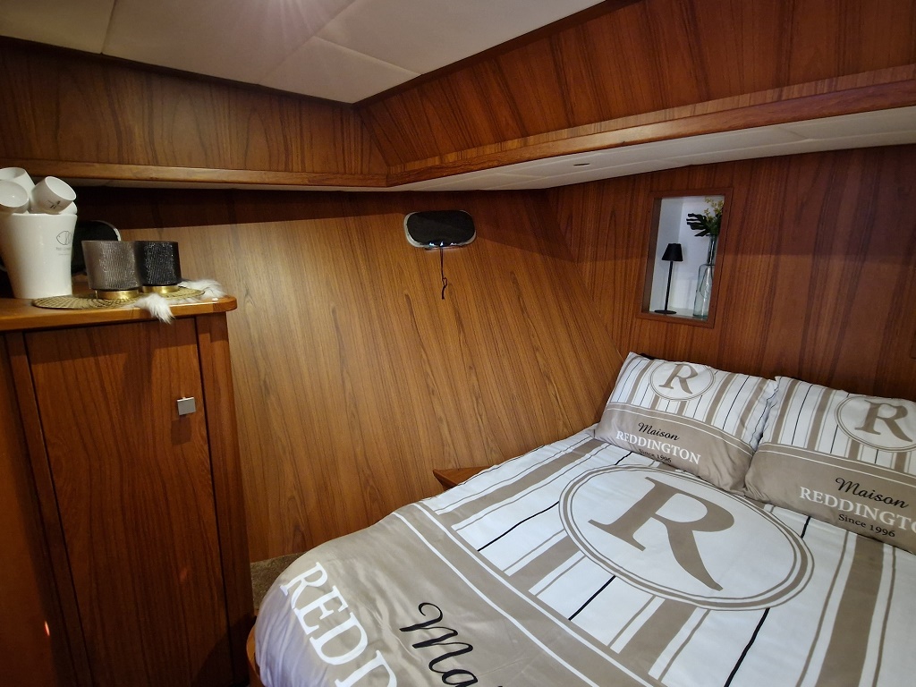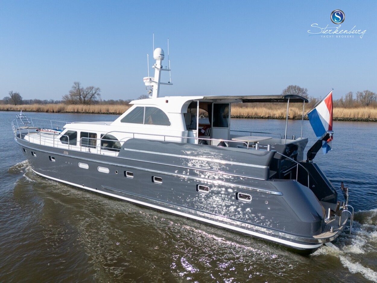 O.a. voorzien van dubbel stuurwerk, 2 spudpalen, achteruitkijk camera, zonnepanelen, hydr. kraan voor bijboot etc,. etc. De ruime stahoogte geeft een verrassend ruimtelijk effect,haar ruime achterdek heeft een comfortabele vaste bank. Haar sterke hydraulische (proportionele) boeg- en hekschroef maken het schip ook bij sterkere wind eenvoudig te manouvreren.