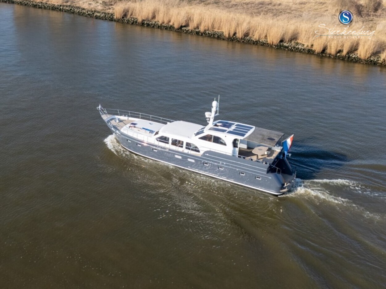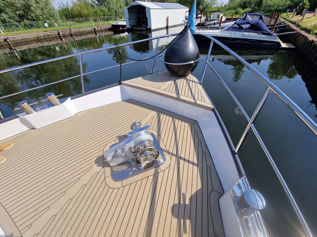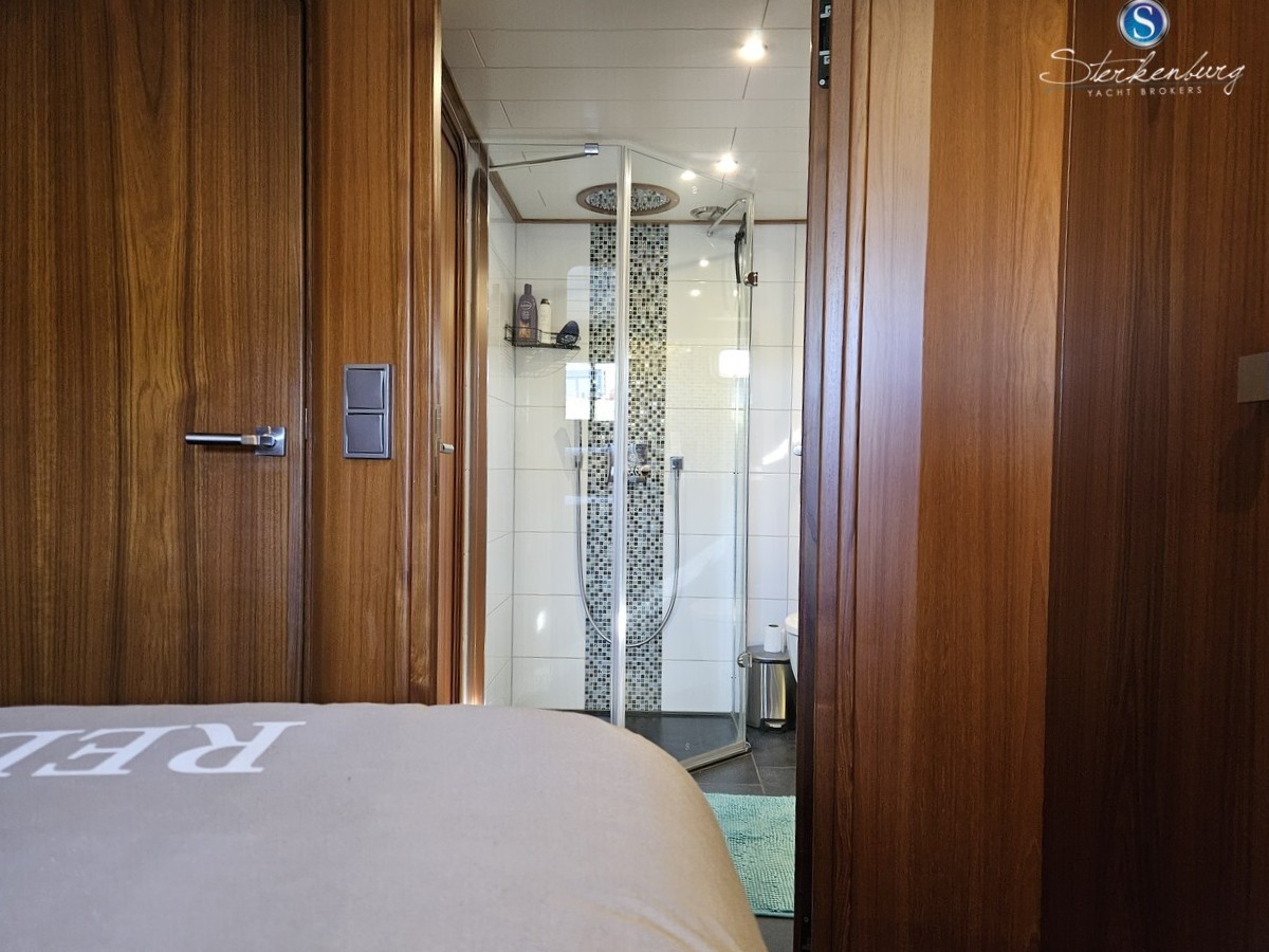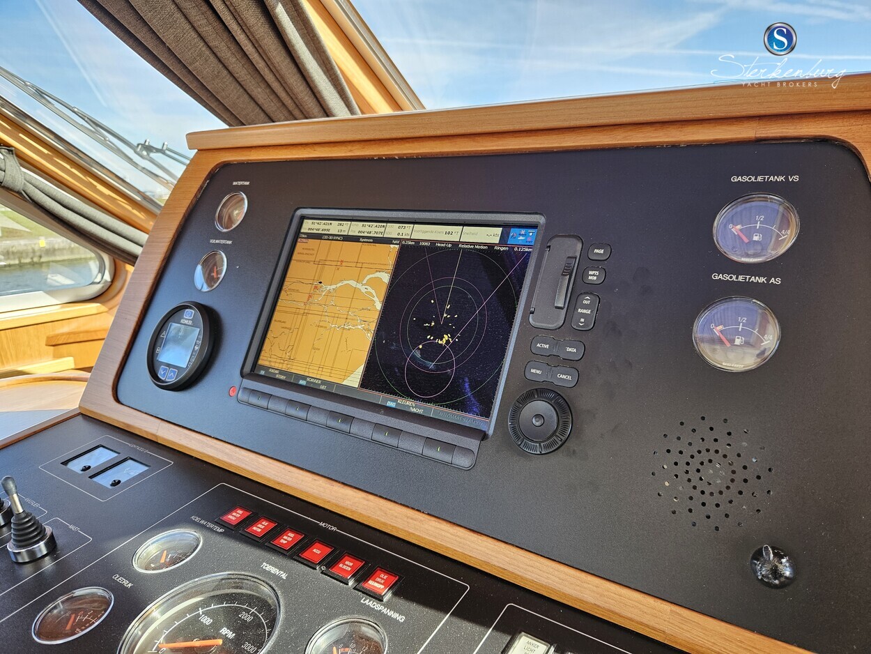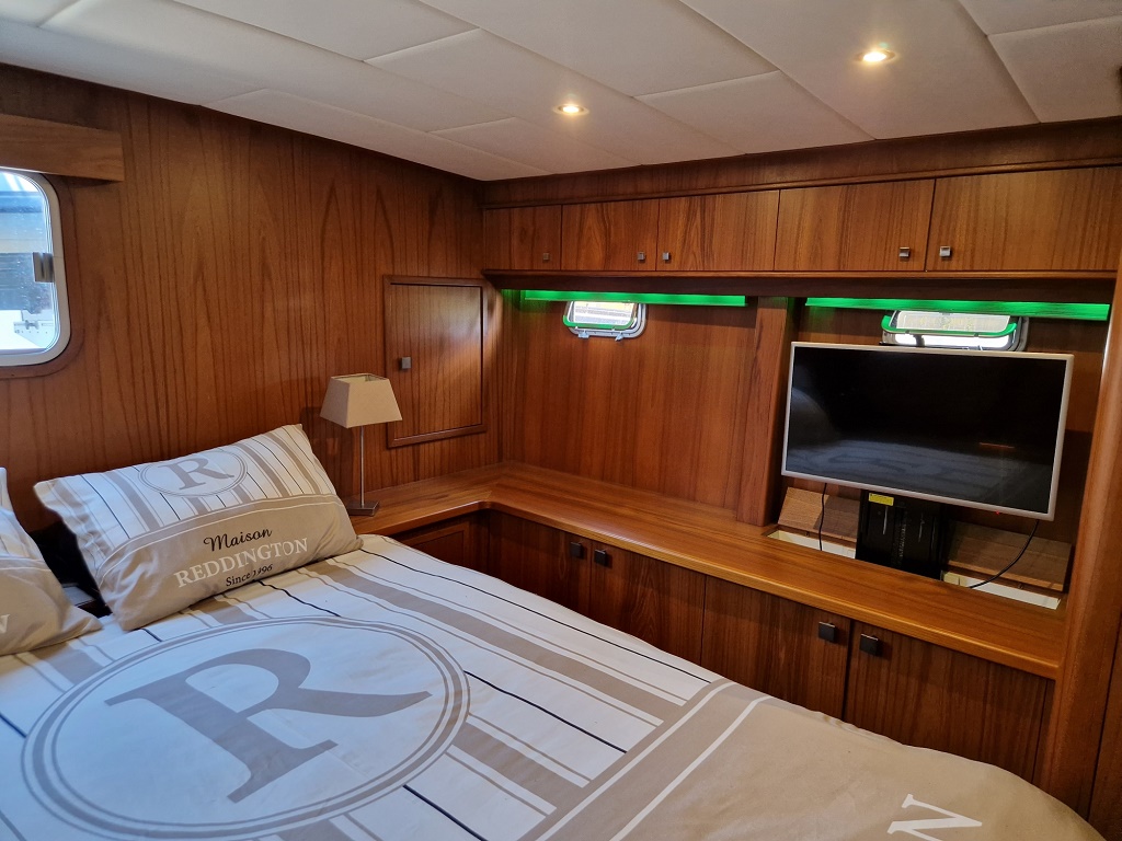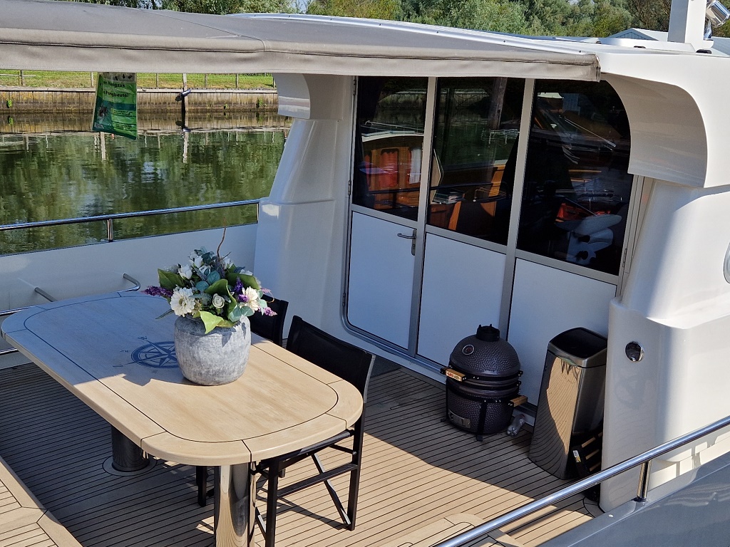 O.a. voorzien van dubbel stuurwerk, 2 spudpalen, achteruitkijk camera, zonnepanelen, hydr. kraan voor bijboot etc,. etc. De ruime stahoogte geeft een verrassend ruimtelijk effect,haar ruime achterdek heeft een comfortabele vaste bank. Haar sterke hydraulische (proportionele) boeg- en hekschroef maken het schip ook bij sterkere wind eenvoudig te manouvreren.