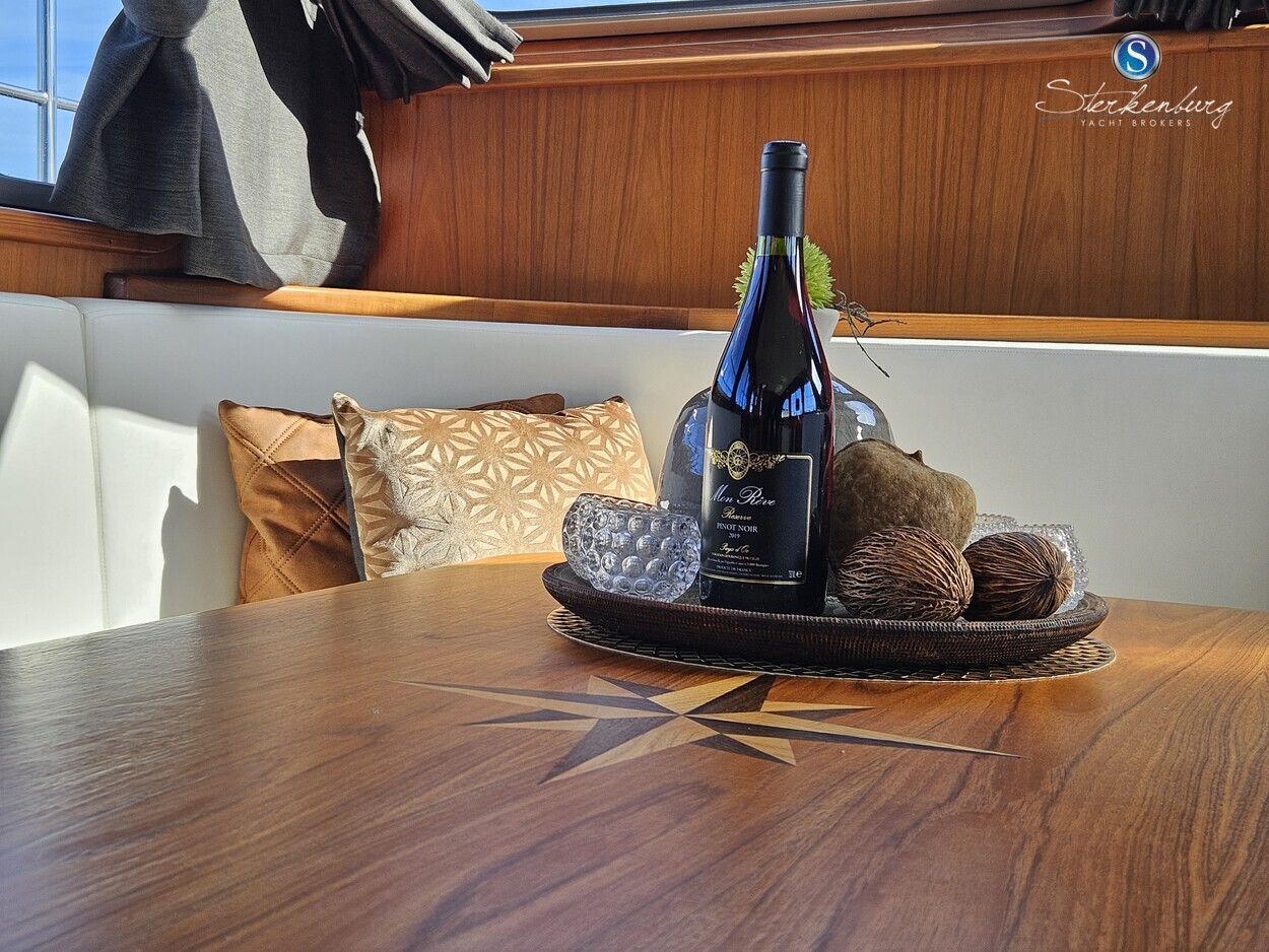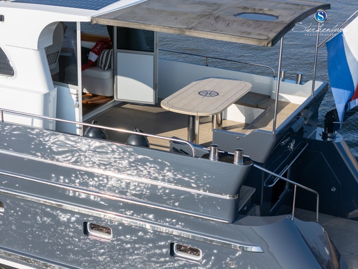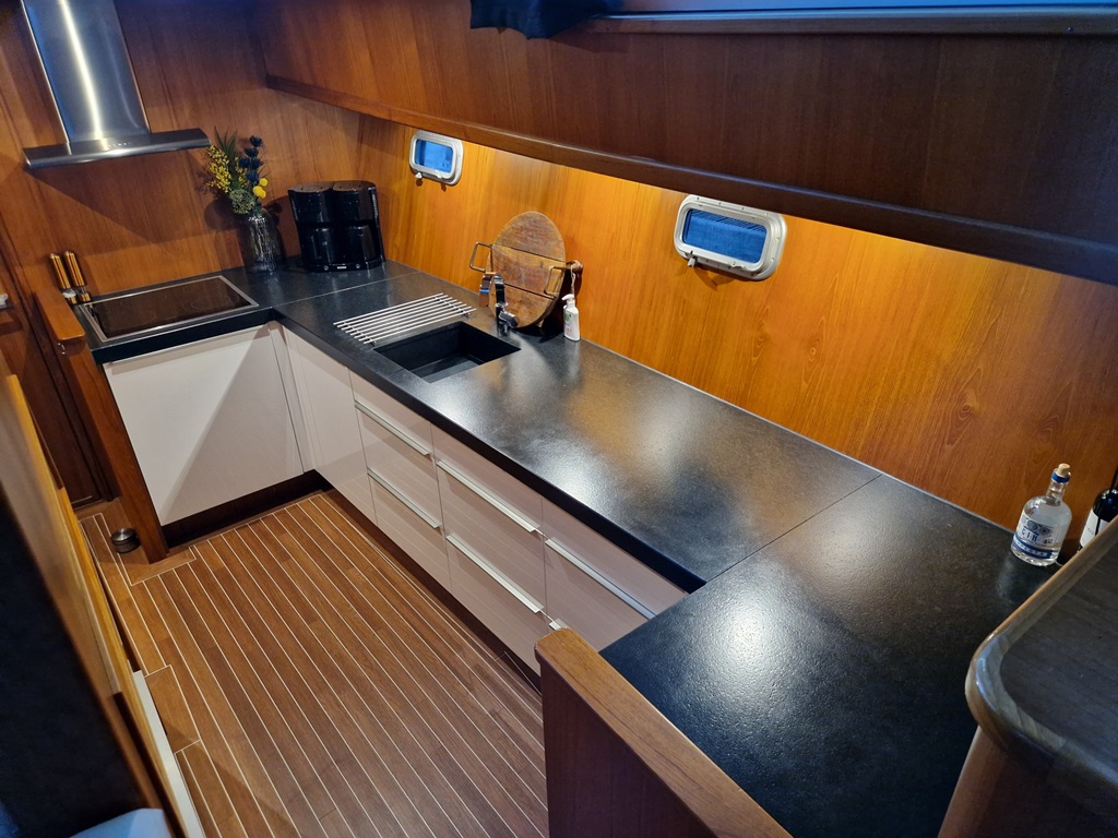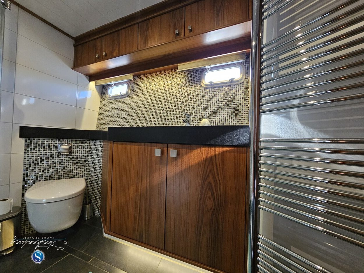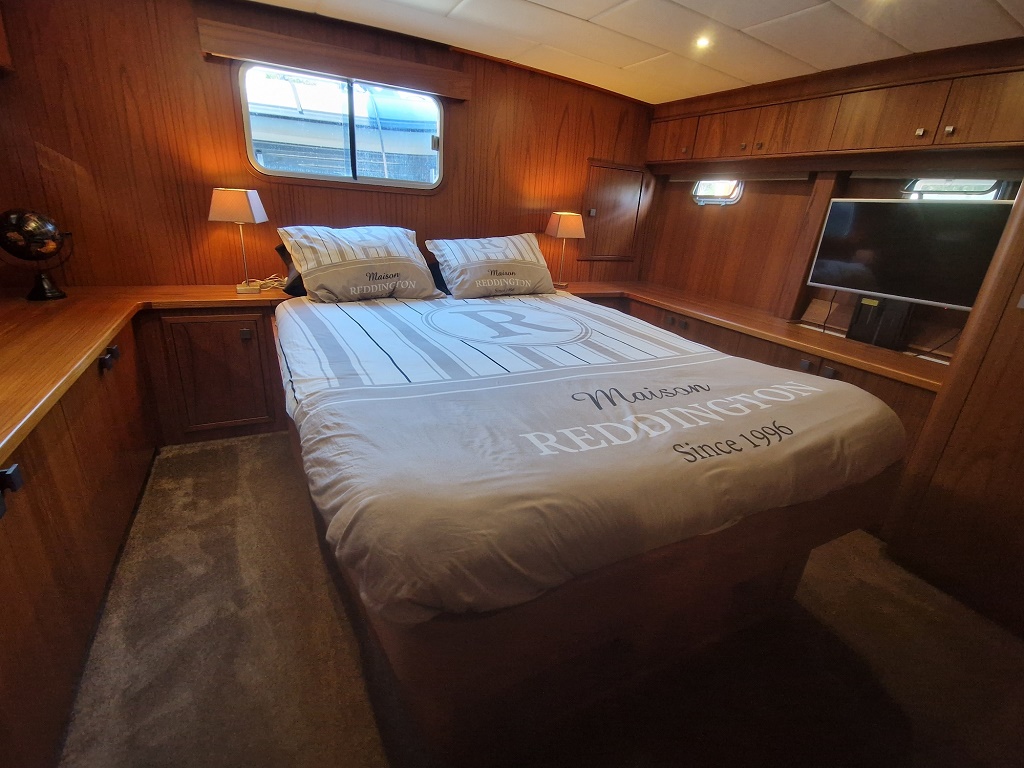 O.a. voorzien van dubbel stuurwerk, 2 spudpalen, achteruitkijk camera, zonnepanelen, hydr. kraan voor bijboot etc,. etc. De ruime stahoogte geeft een verrassend ruimtelijk effect,haar ruime achterdek heeft een comfortabele vaste bank. Haar sterke hydraulische (proportionele) boeg- en hekschroef maken het schip ook bij sterkere wind eenvoudig te manouvreren.