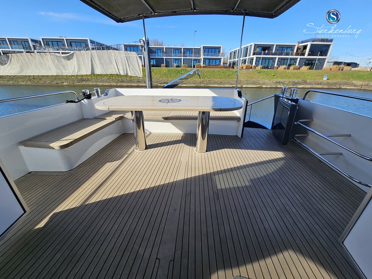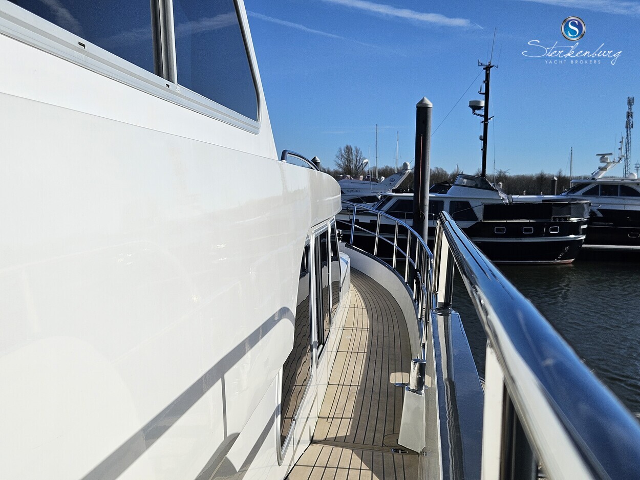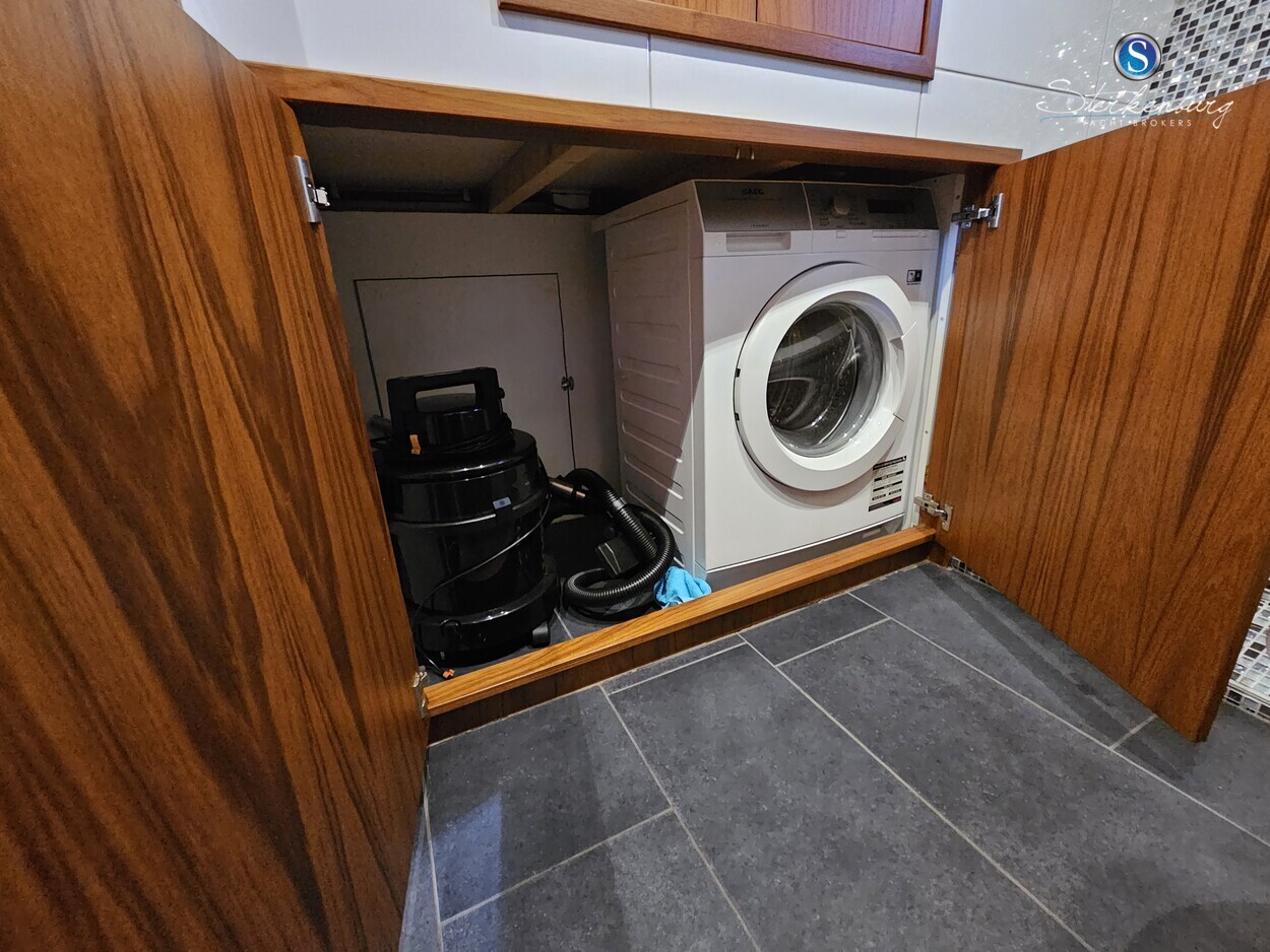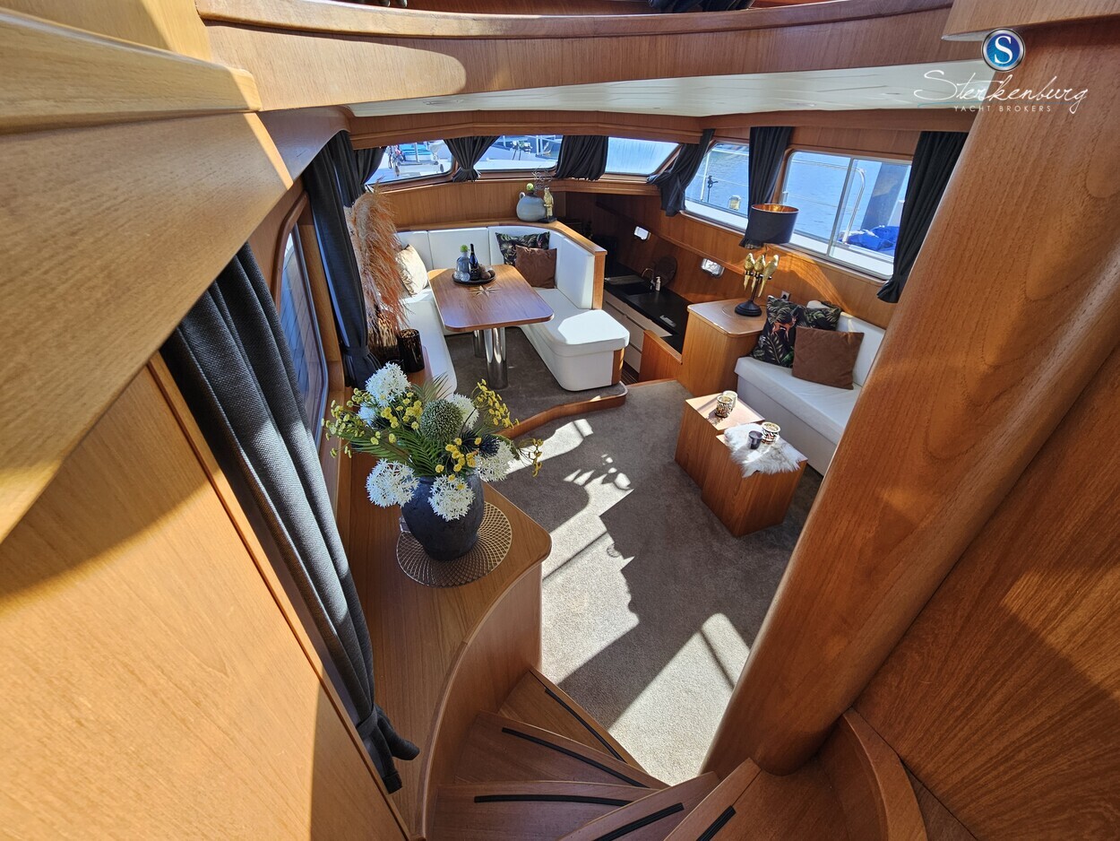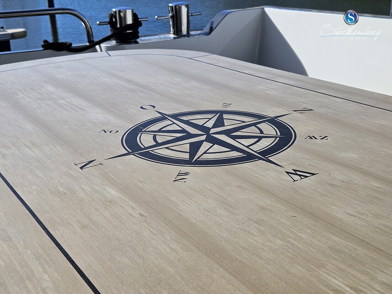 O.a. voorzien van dubbel stuurwerk, 2 spudpalen, achteruitkijk camera, zonnepanelen, hydr. kraan voor bijboot etc,. etc. De ruime stahoogte geeft een verrassend ruimtelijk effect,haar ruime achterdek heeft een comfortabele vaste bank. Haar sterke hydraulische (proportionele) boeg- en hekschroef maken het schip ook bij sterkere wind eenvoudig te manouvreren.