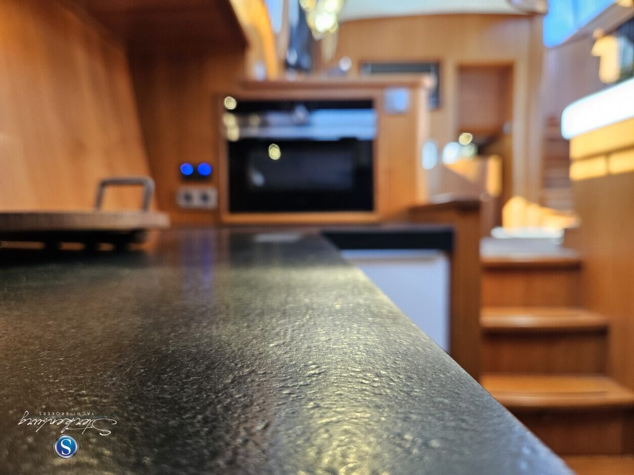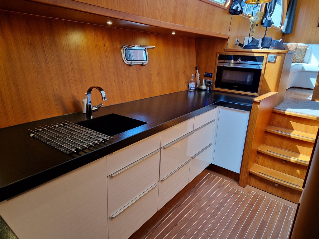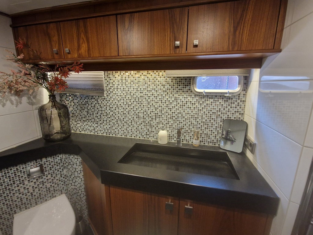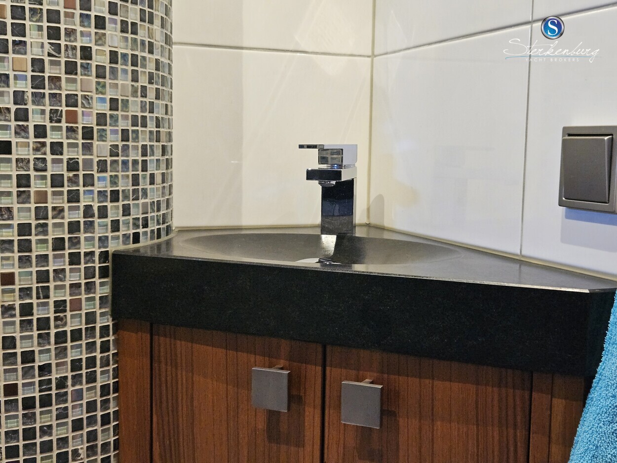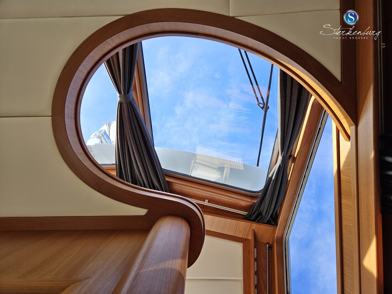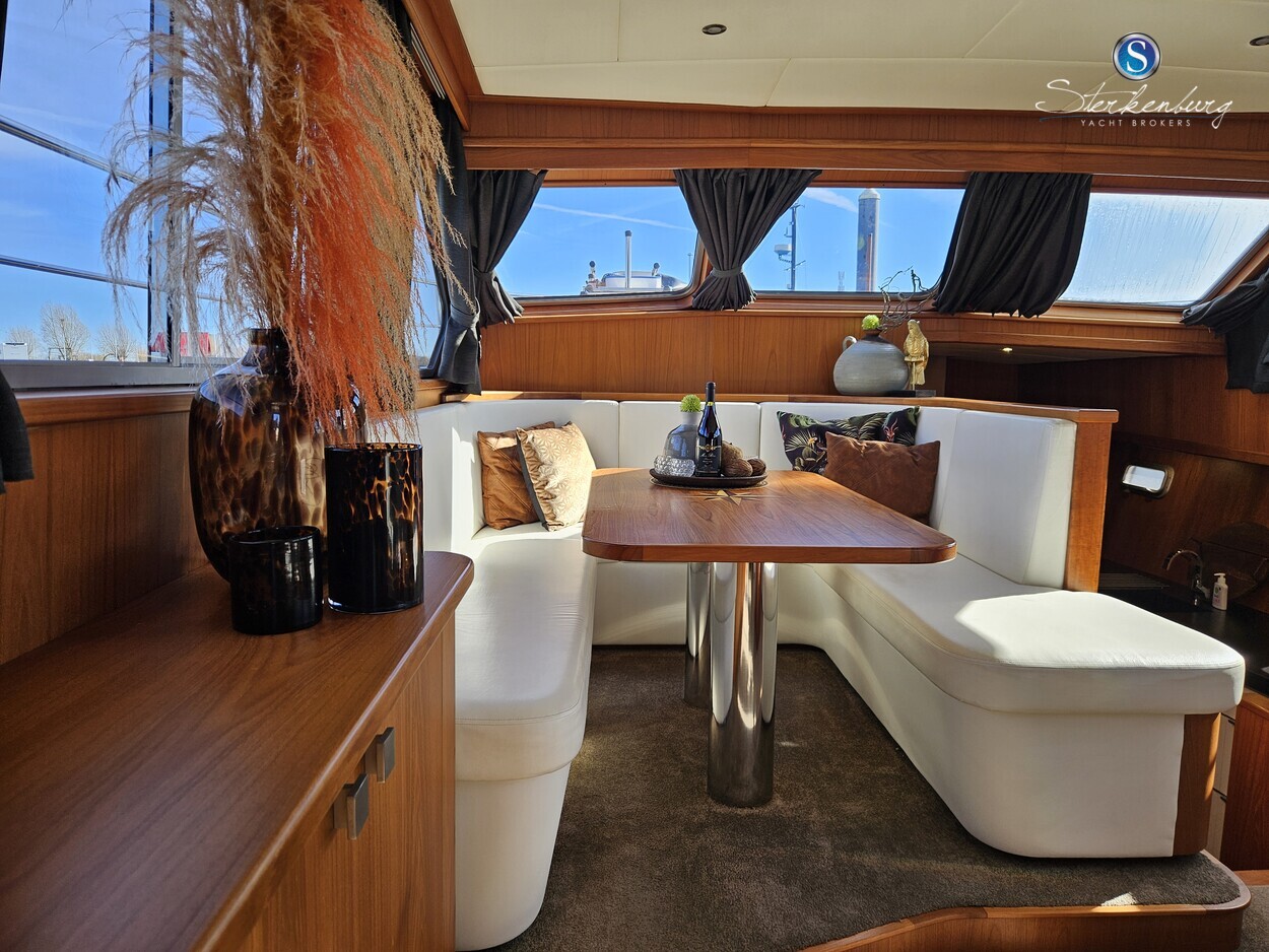 O.a. voorzien van dubbel stuurwerk, 2 spudpalen, achteruitkijk camera, zonnepanelen, hydr. kraan voor bijboot etc,. etc. De ruime stahoogte geeft een verrassend ruimtelijk effect,haar ruime achterdek heeft een comfortabele vaste bank. Haar sterke hydraulische (proportionele) boeg- en hekschroef maken het schip ook bij sterkere wind eenvoudig te manouvreren.