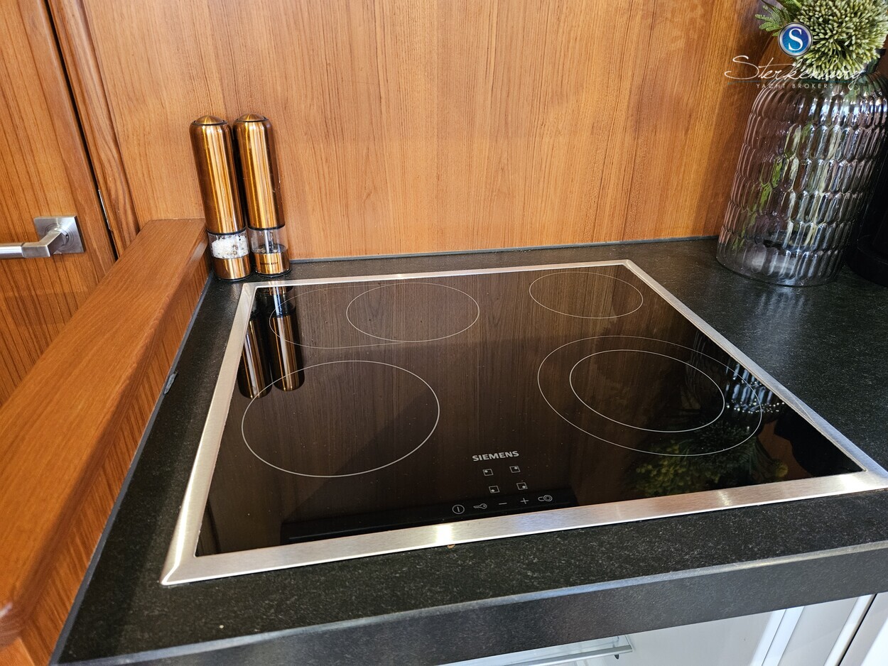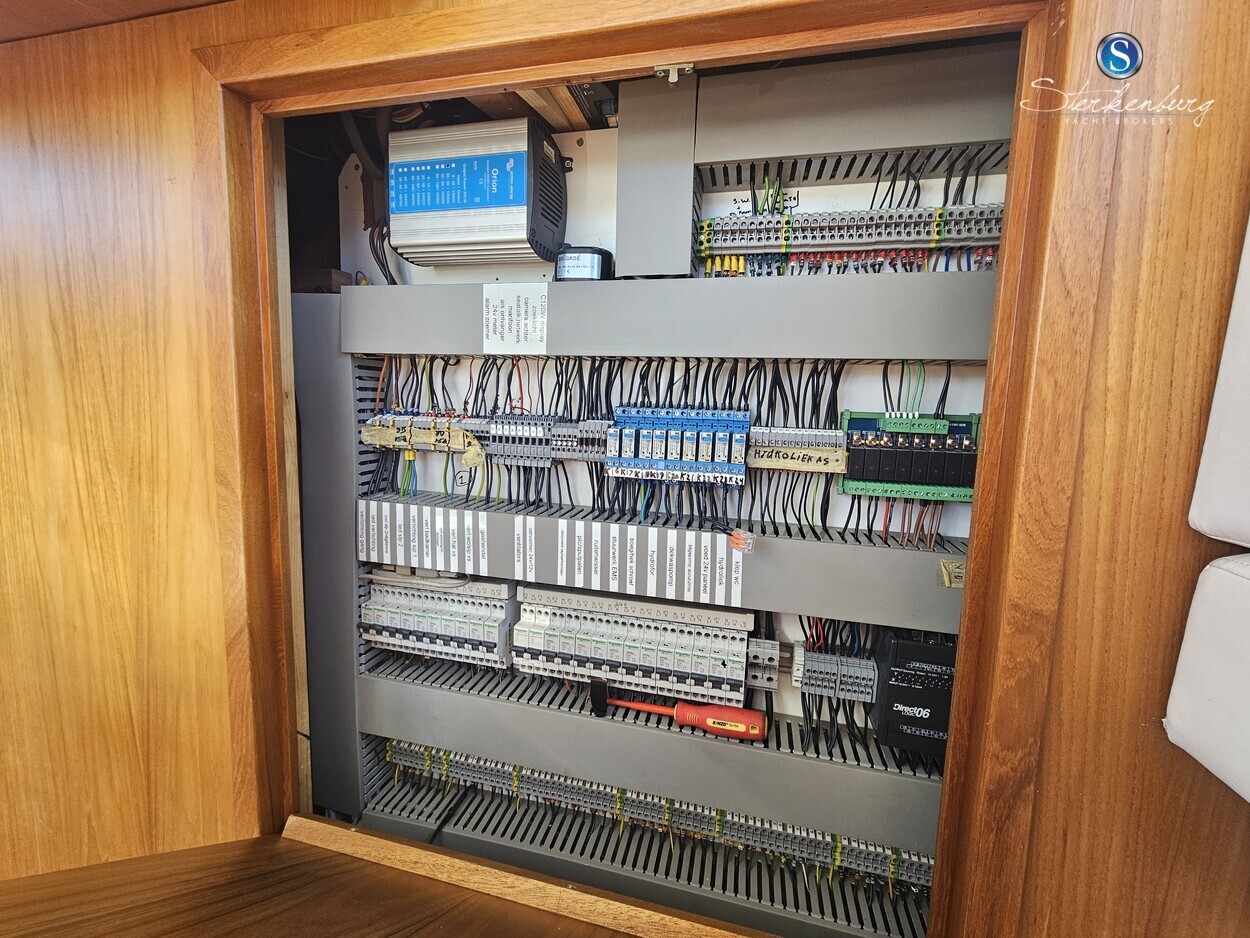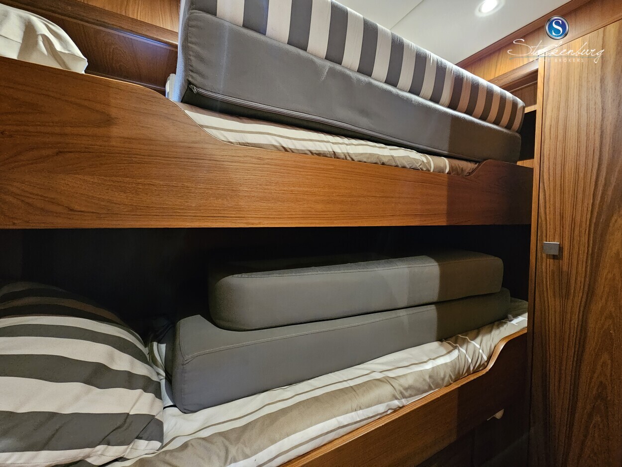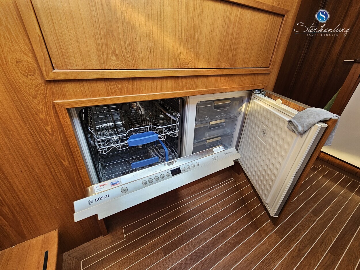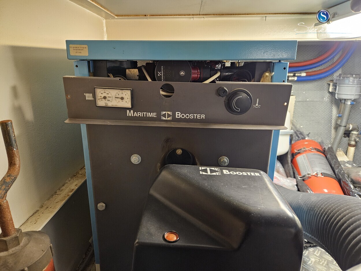 O.a. voorzien van dubbel stuurwerk, 2 spudpalen, achteruitkijk camera, zonnepanelen, hydr. kraan voor bijboot etc,. etc. De ruime stahoogte geeft een verrassend ruimtelijk effect,haar ruime achterdek heeft een comfortabele vaste bank. Haar sterke hydraulische (proportionele) boeg- en hekschroef maken het schip ook bij sterkere wind eenvoudig te manouvreren.