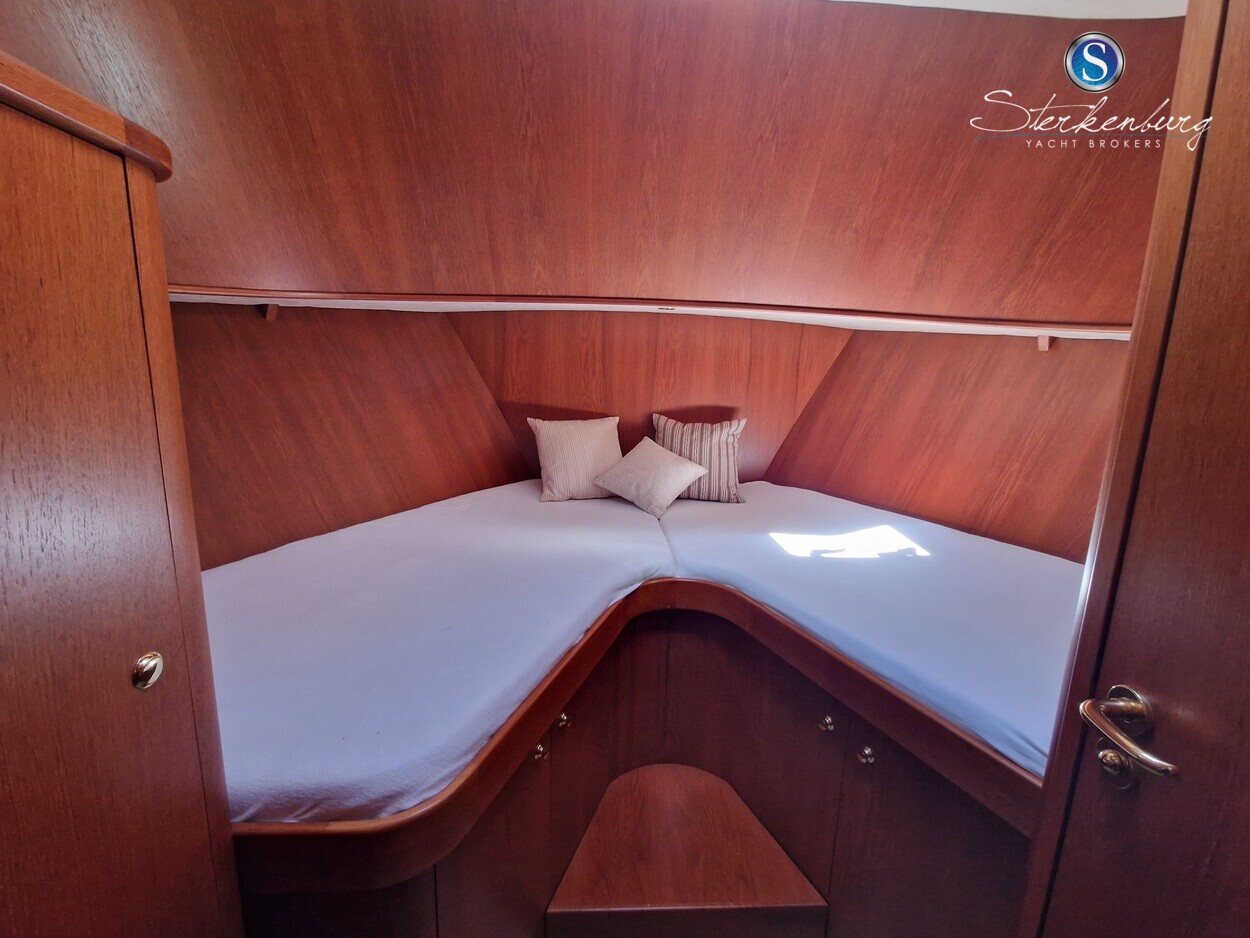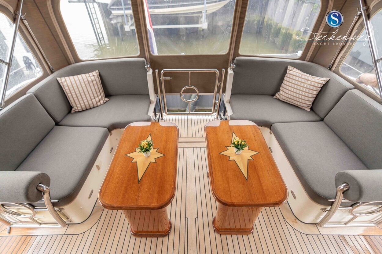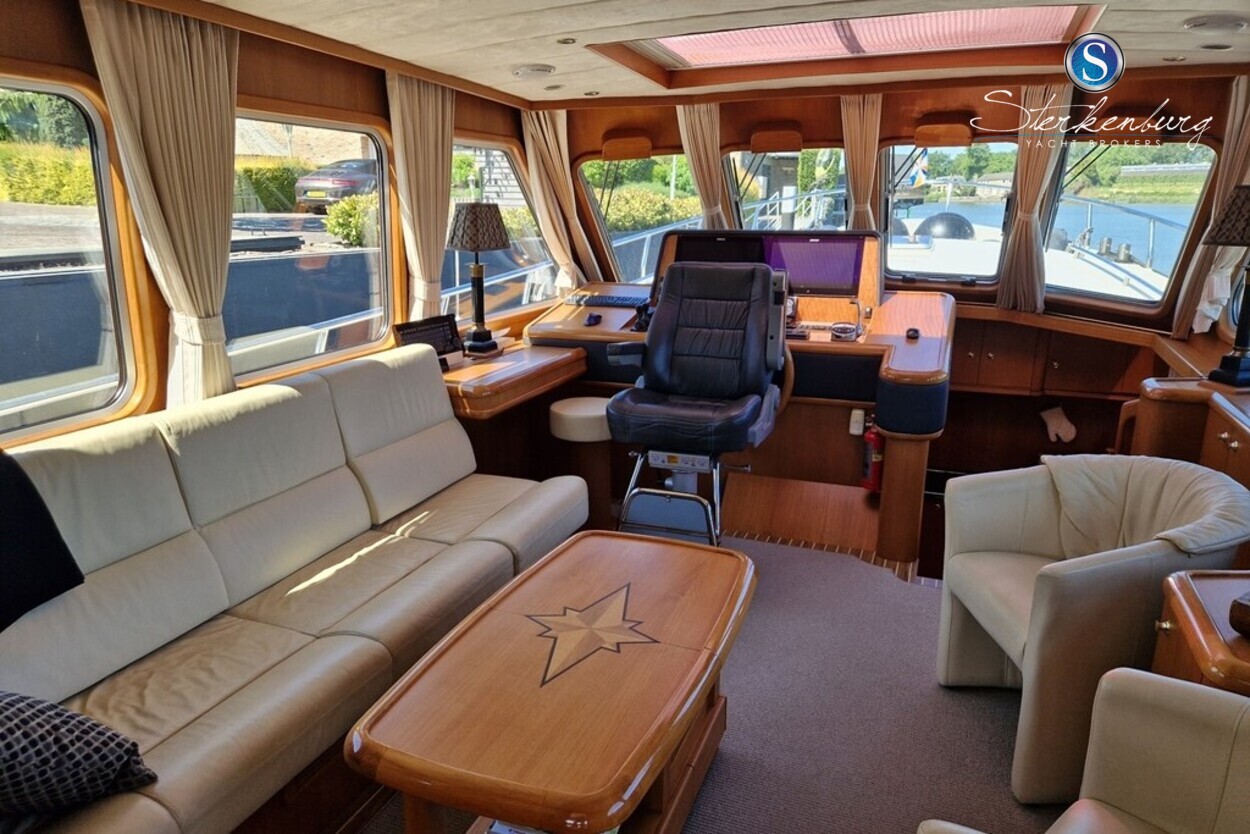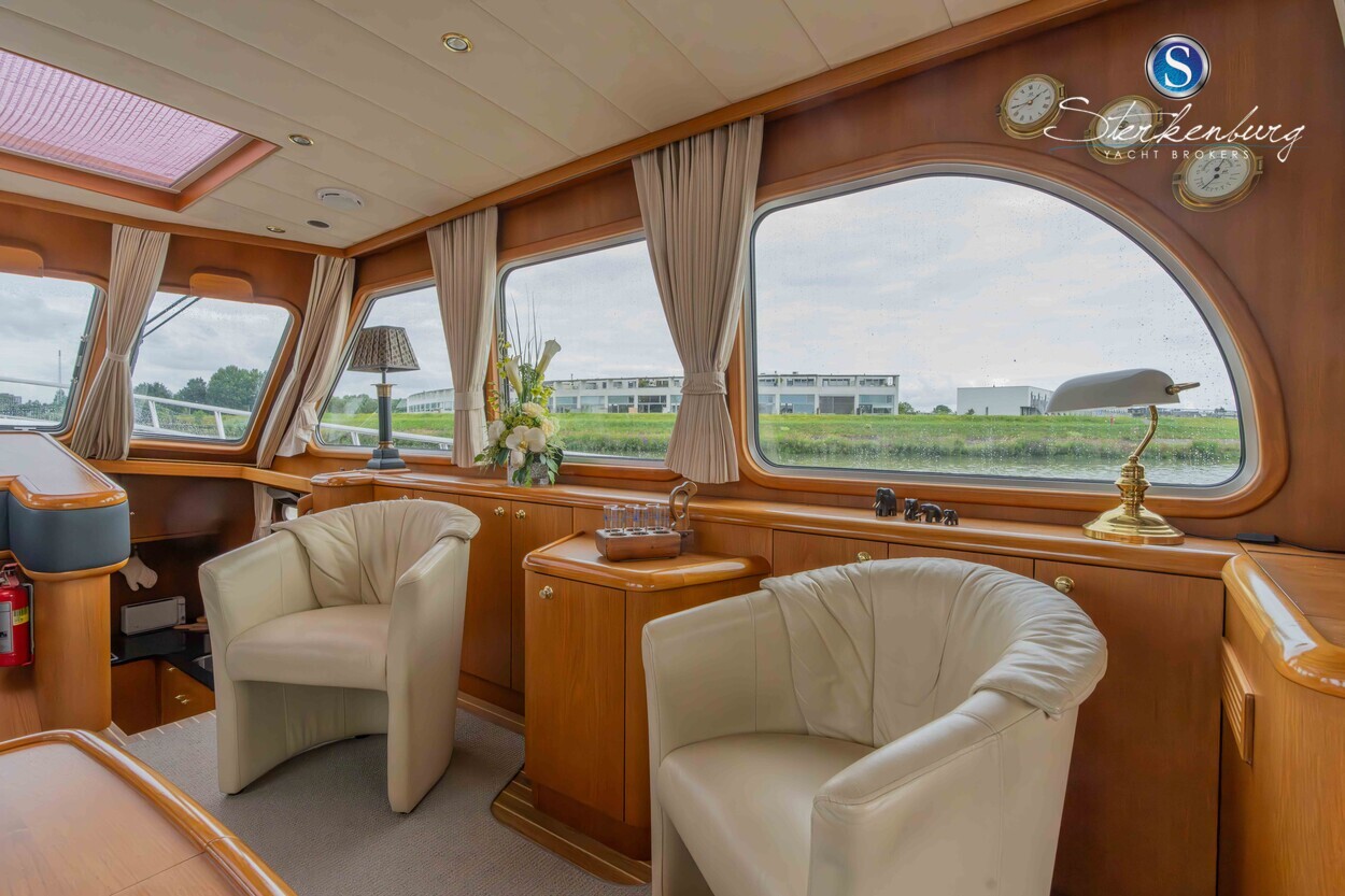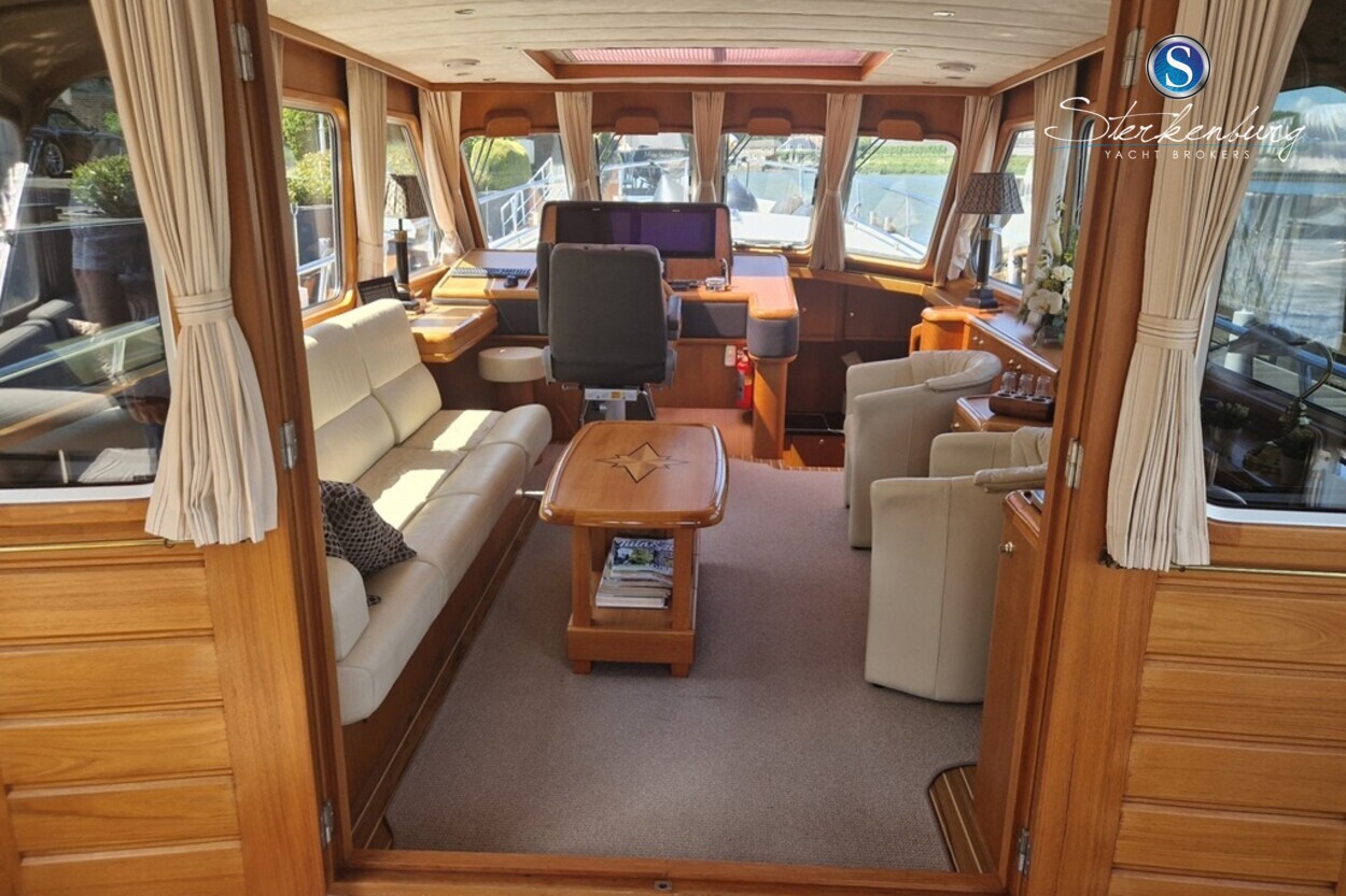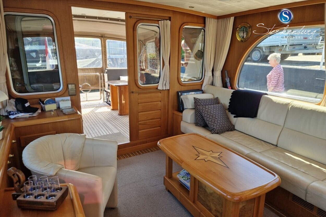 Deze prachtige rondspant gejoggelde Linden 1500 OK heeft een twee hutten indeling met een riante eigenaarshut midscheeps. Beide hutten zijn voorzien van een eigen badkamers met toilet en douchecabine. Salon en achterdek zijn gelijkvloers aan elkaar verbonden. De kombuis en salonzit zijn benedendeks en bieden veel comfort voor alle opvarenden. Dit jacht is uitgevoerd met hydraulische vin stabilisatoren, waardoor het ook varen in slechtere weersomstandigheden geen probleem is. Ze is zeer compleet uitgerust.