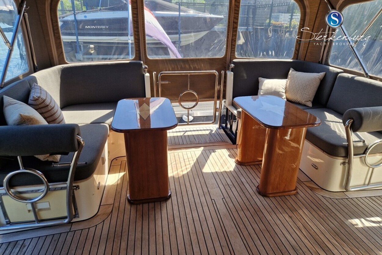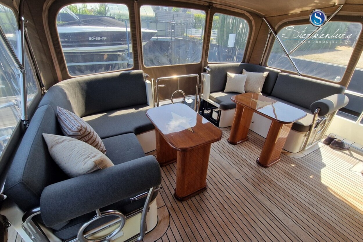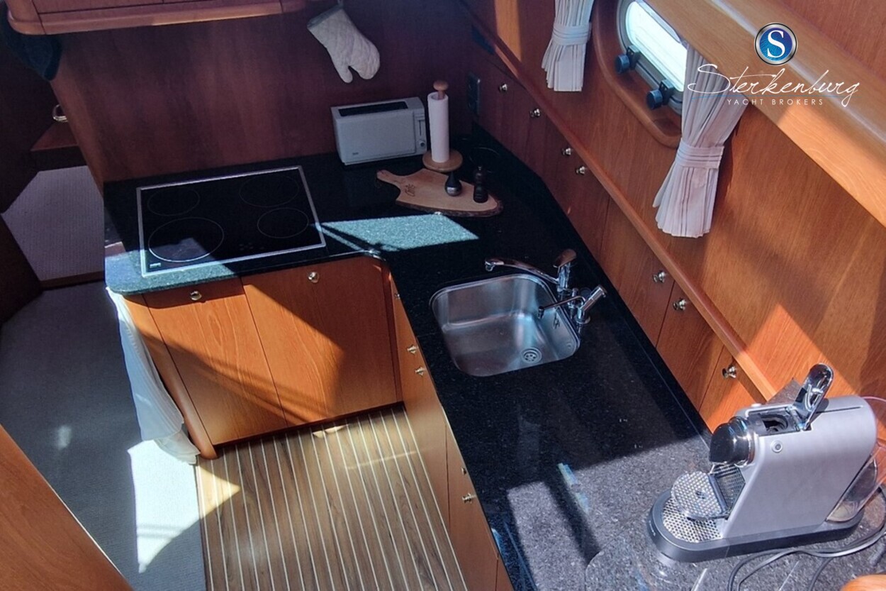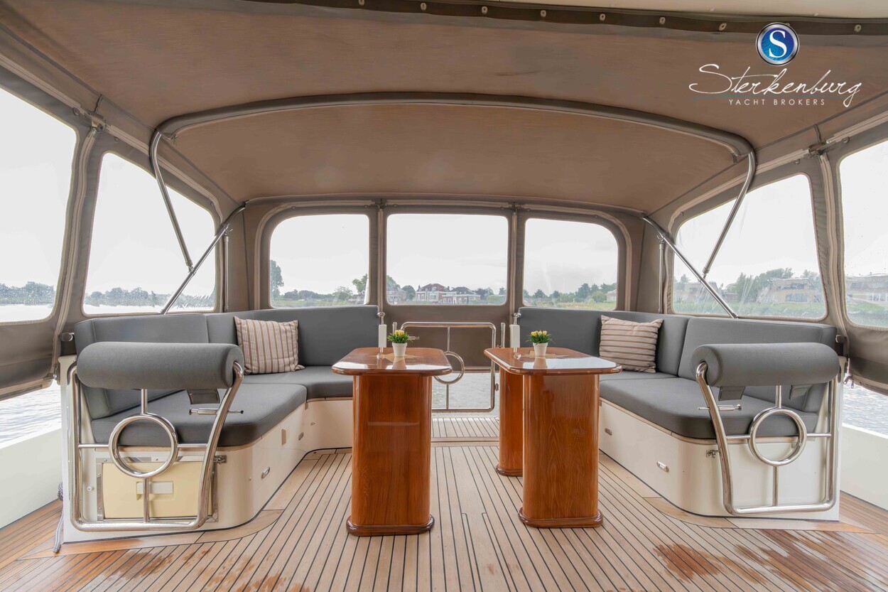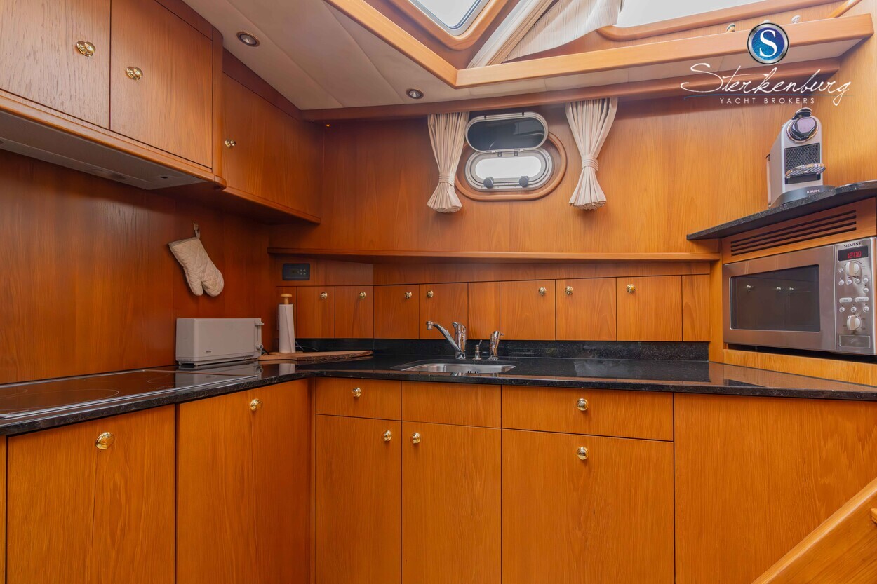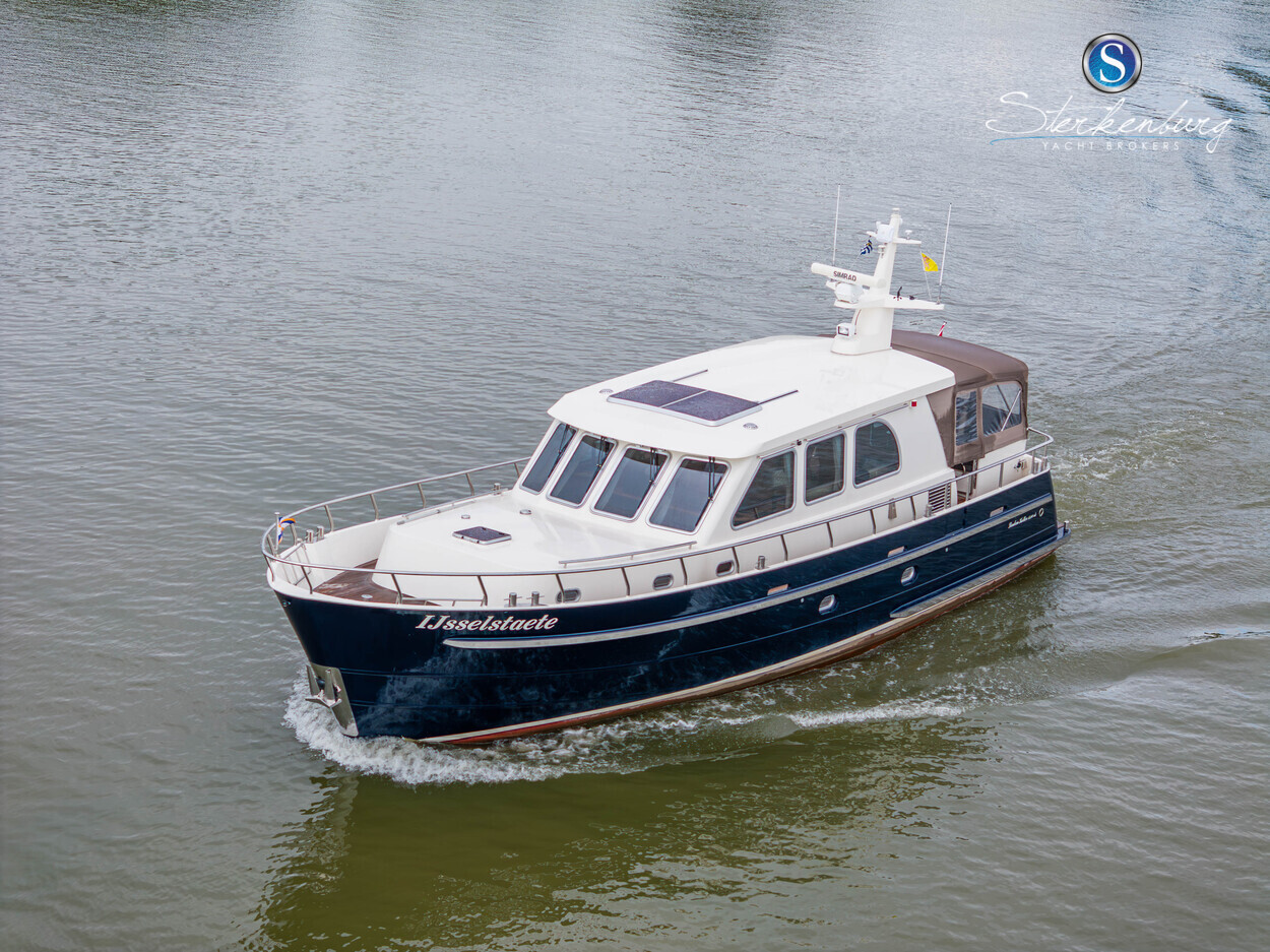 Deze prachtige rondspant gejoggelde Linden 1500 OK heeft een twee hutten indeling met een riante eigenaarshut midscheeps. Beide hutten zijn voorzien van een eigen badkamers met toilet en douchecabine. Salon en achterdek zijn gelijkvloers aan elkaar verbonden. De kombuis en salonzit zijn benedendeks en bieden veel comfort voor alle opvarenden. Dit jacht is uitgevoerd met hydraulische vin stabilisatoren, waardoor het ook varen in slechtere weersomstandigheden geen probleem is. Ze is zeer compleet uitgerust.