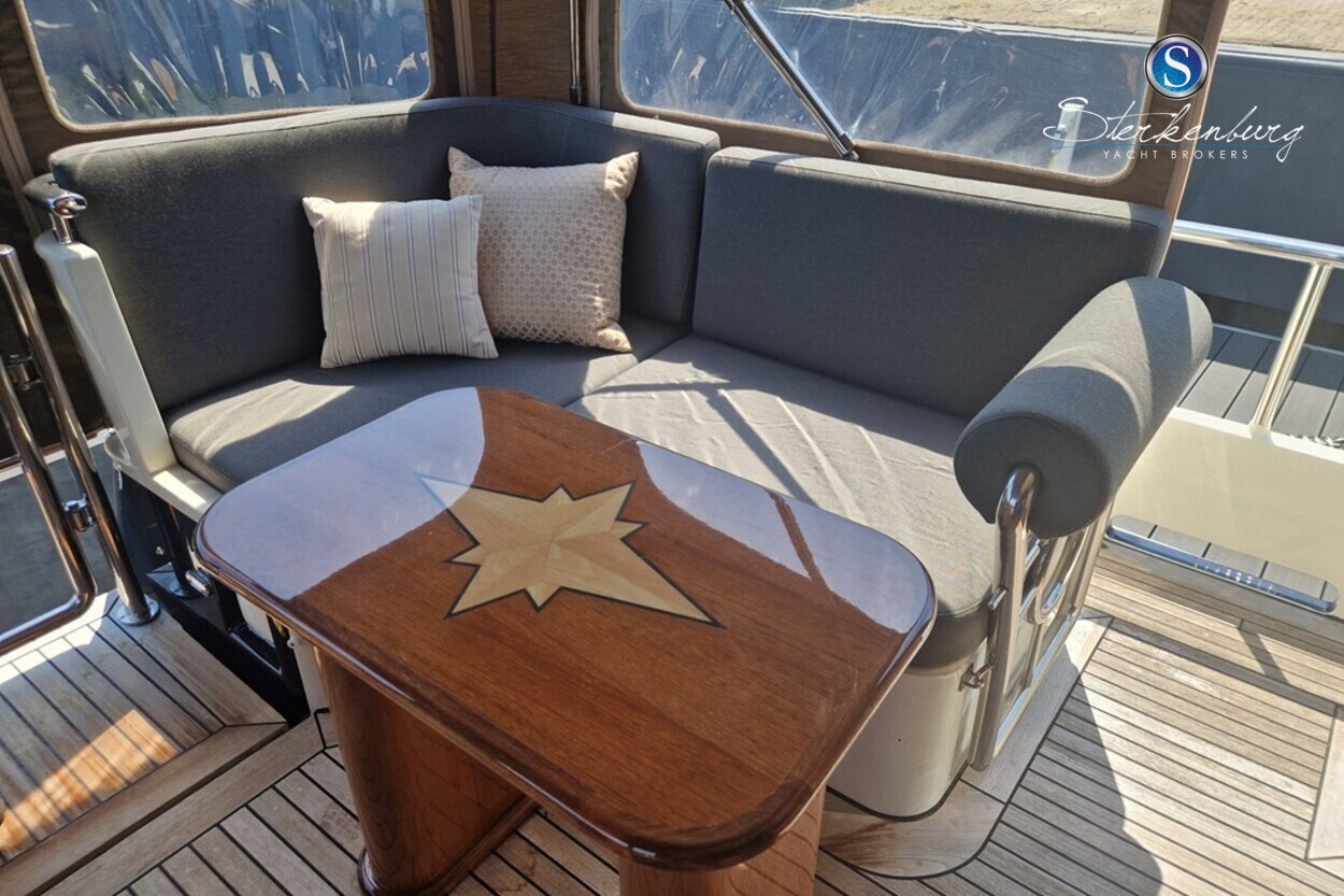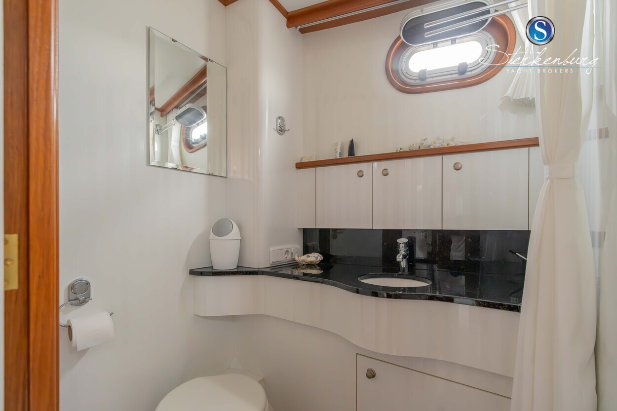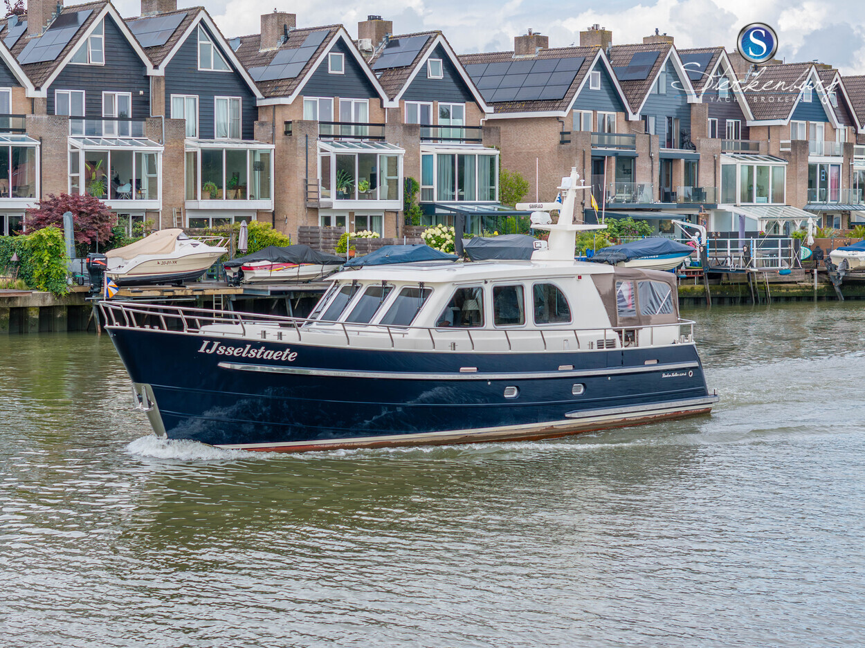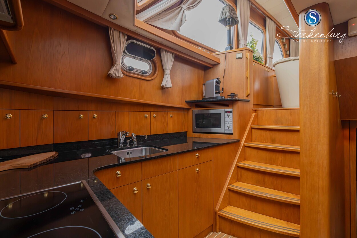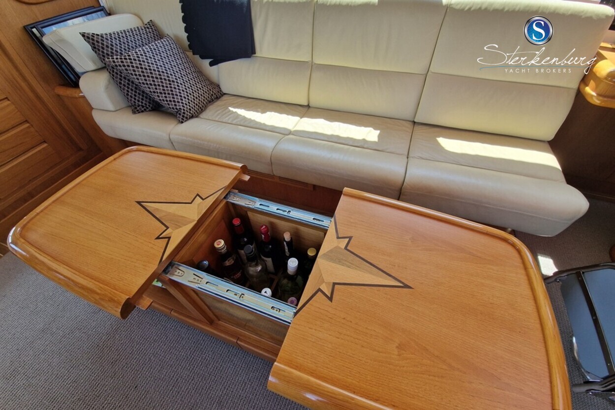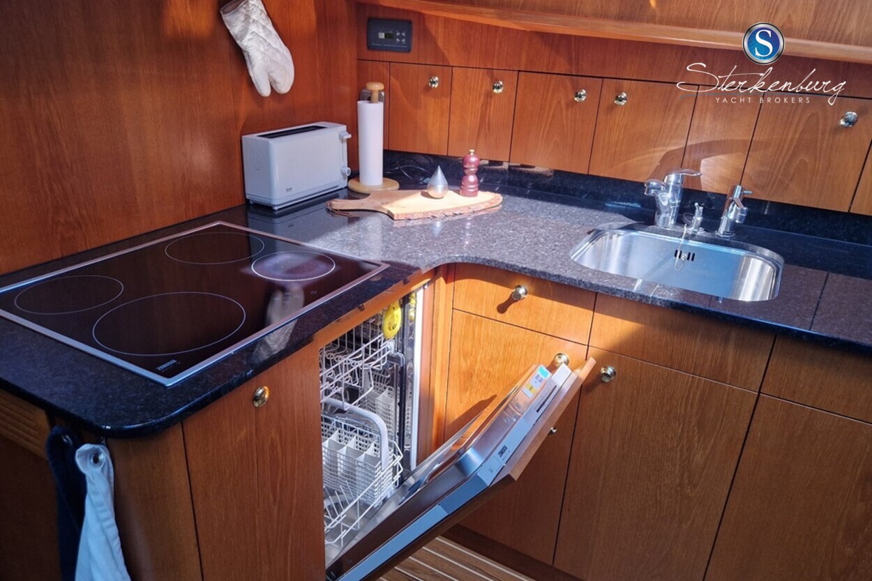 Deze prachtige rondspant gejoggelde Linden 1500 OK heeft een twee hutten indeling met een riante eigenaarshut midscheeps. Beide hutten zijn voorzien van een eigen badkamers met toilet en douchecabine. Salon en achterdek zijn gelijkvloers aan elkaar verbonden. De kombuis en salonzit zijn benedendeks en bieden veel comfort voor alle opvarenden. Dit jacht is uitgevoerd met hydraulische vin stabilisatoren, waardoor het ook varen in slechtere weersomstandigheden geen probleem is. Ze is zeer compleet uitgerust.