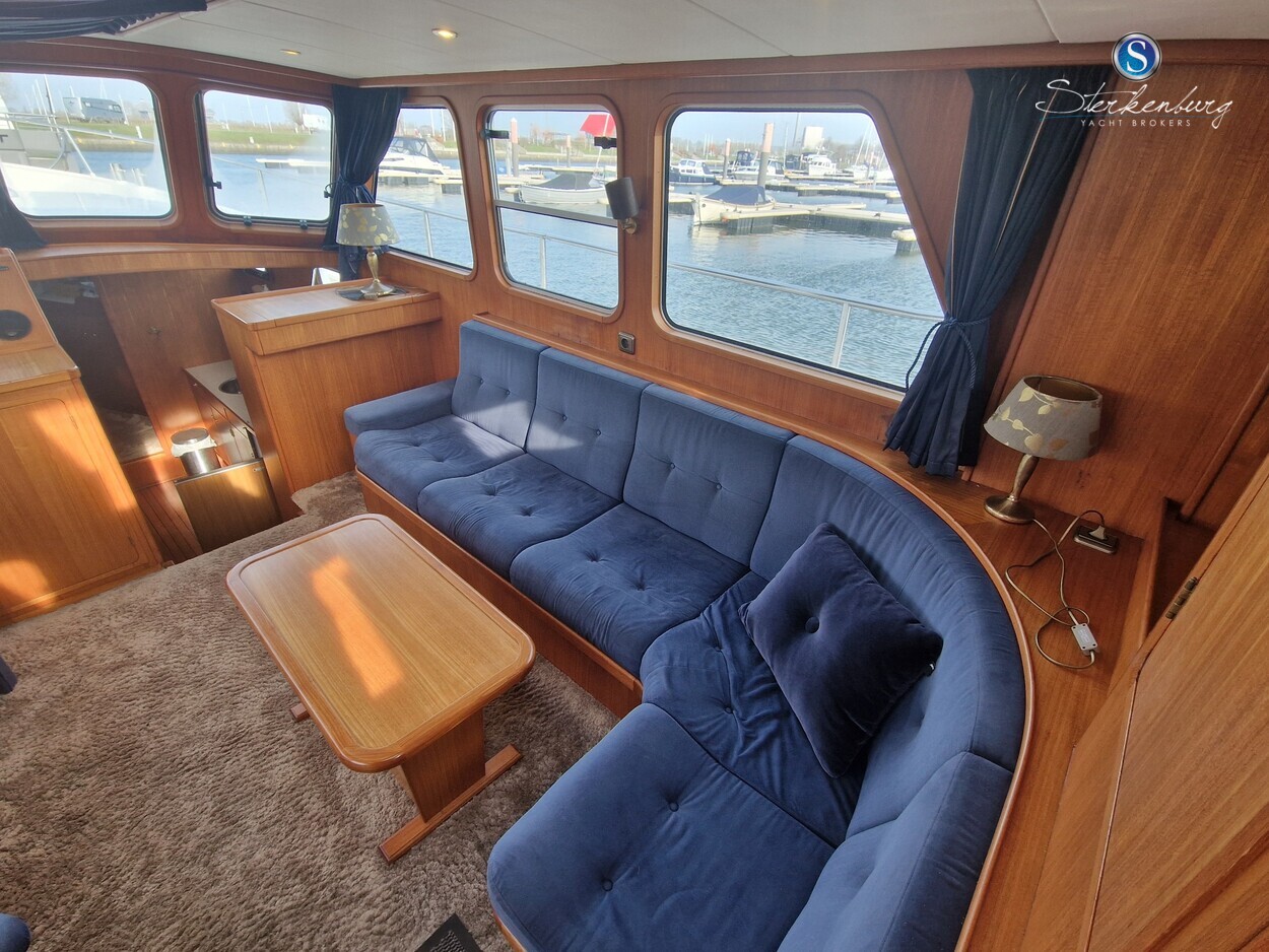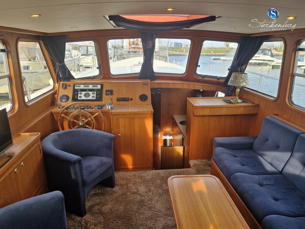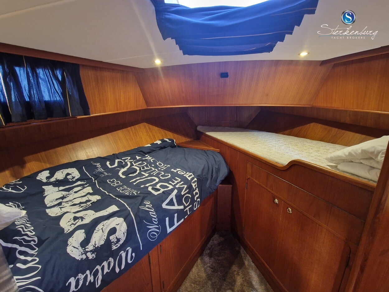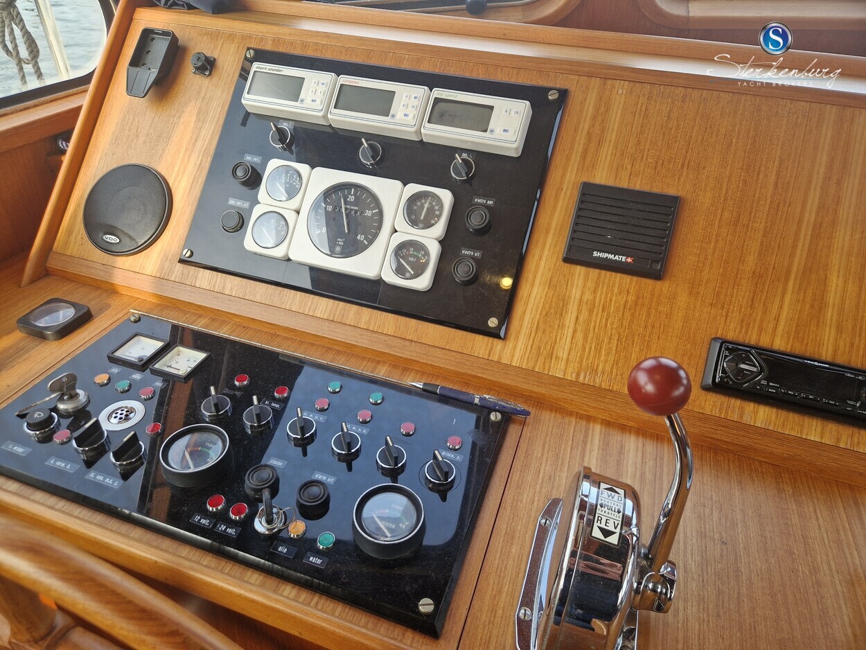 Door MOONEN gebouwde multiknikspantkotter met een luxe teakhouten interieur met 2 hutten, ruime salon met binnenstuurstand en 2e stuurstand op groot achterdek. Ze heeft brede gangboorden waardoor u makkelijk en dankzij een mooie RVS railing, veilig rondom de boot kunt lopen. Motor in 2018 geheel professioneel gereviseerd, in 2021 zijn de teak dekken opnieuw gerubberd, cabrio in 2023 vernieuwd en in 2023 radar/plotter geïnstalleerd.Recente vlakmeting beschikbaar.