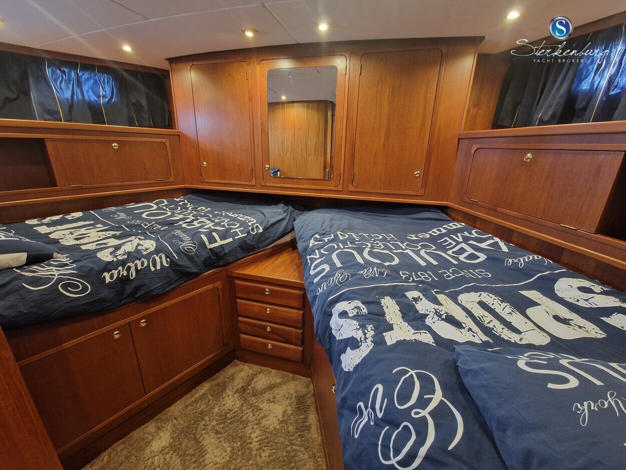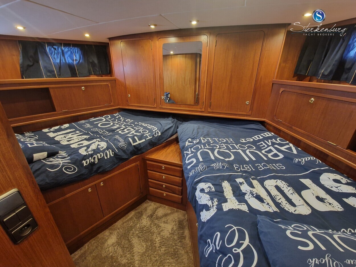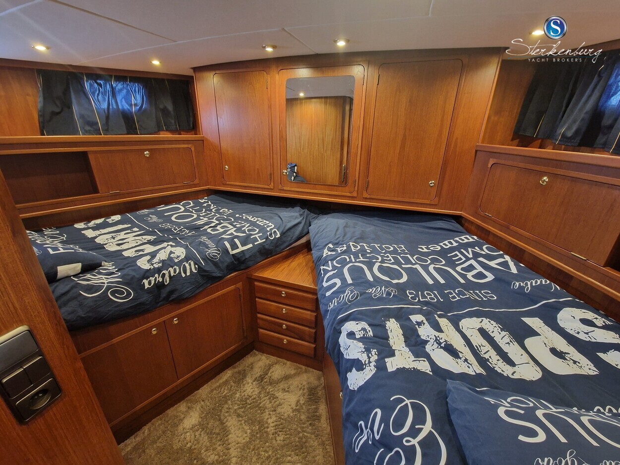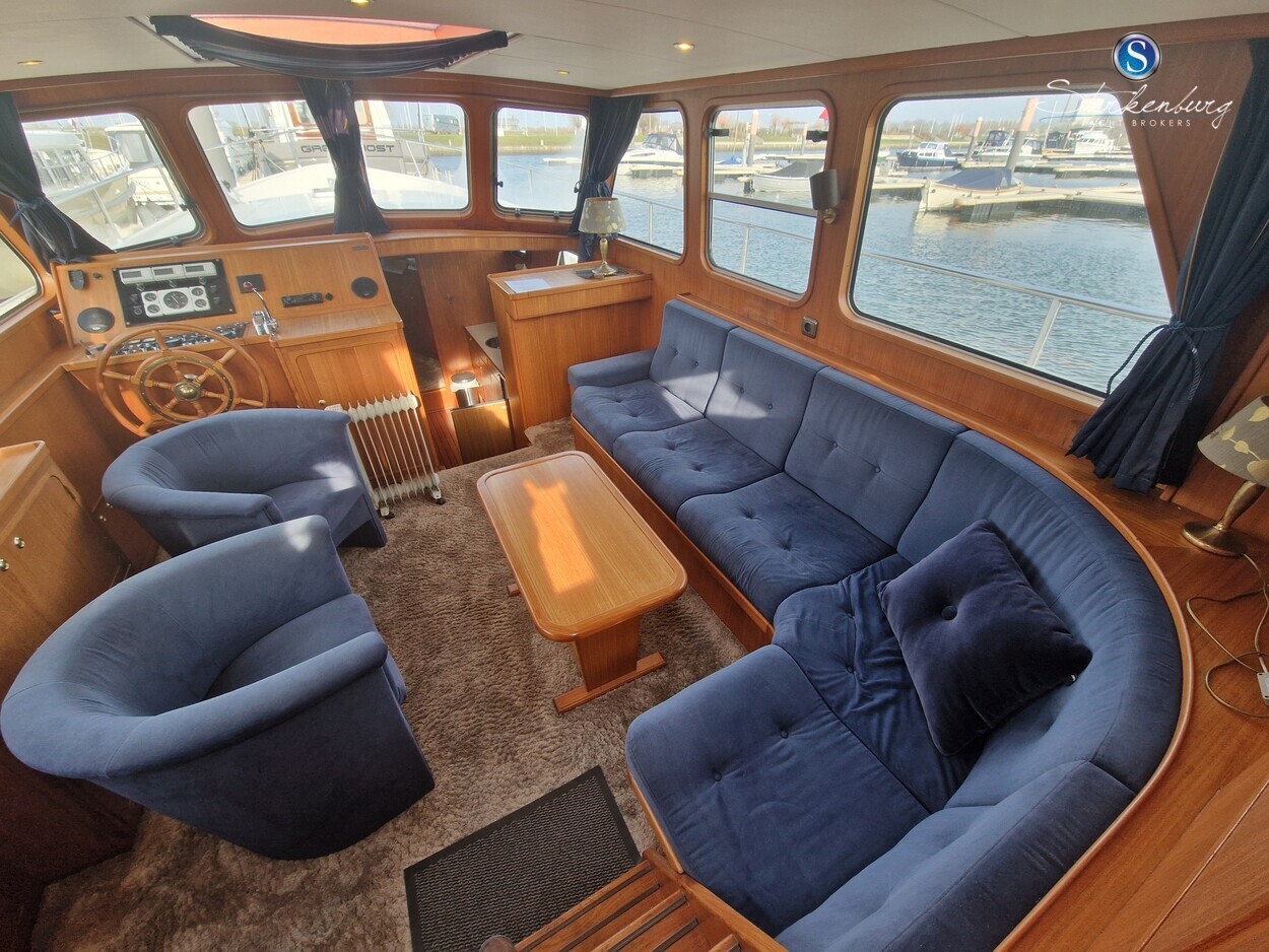 Door MOONEN gebouwde multiknikspantkotter met een luxe teakhouten interieur met 2 hutten, ruime salon met binnenstuurstand en 2e stuurstand op groot achterdek. Ze heeft brede gangboorden waardoor u makkelijk en dankzij een mooie RVS railing, veilig rondom de boot kunt lopen. Motor in 2018 geheel professioneel gereviseerd, in 2021 zijn de teak dekken opnieuw gerubberd, cabrio in 2023 vernieuwd en in 2023 radar/plotter geïnstalleerd.Recente vlakmeting beschikbaar.