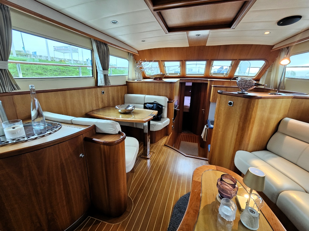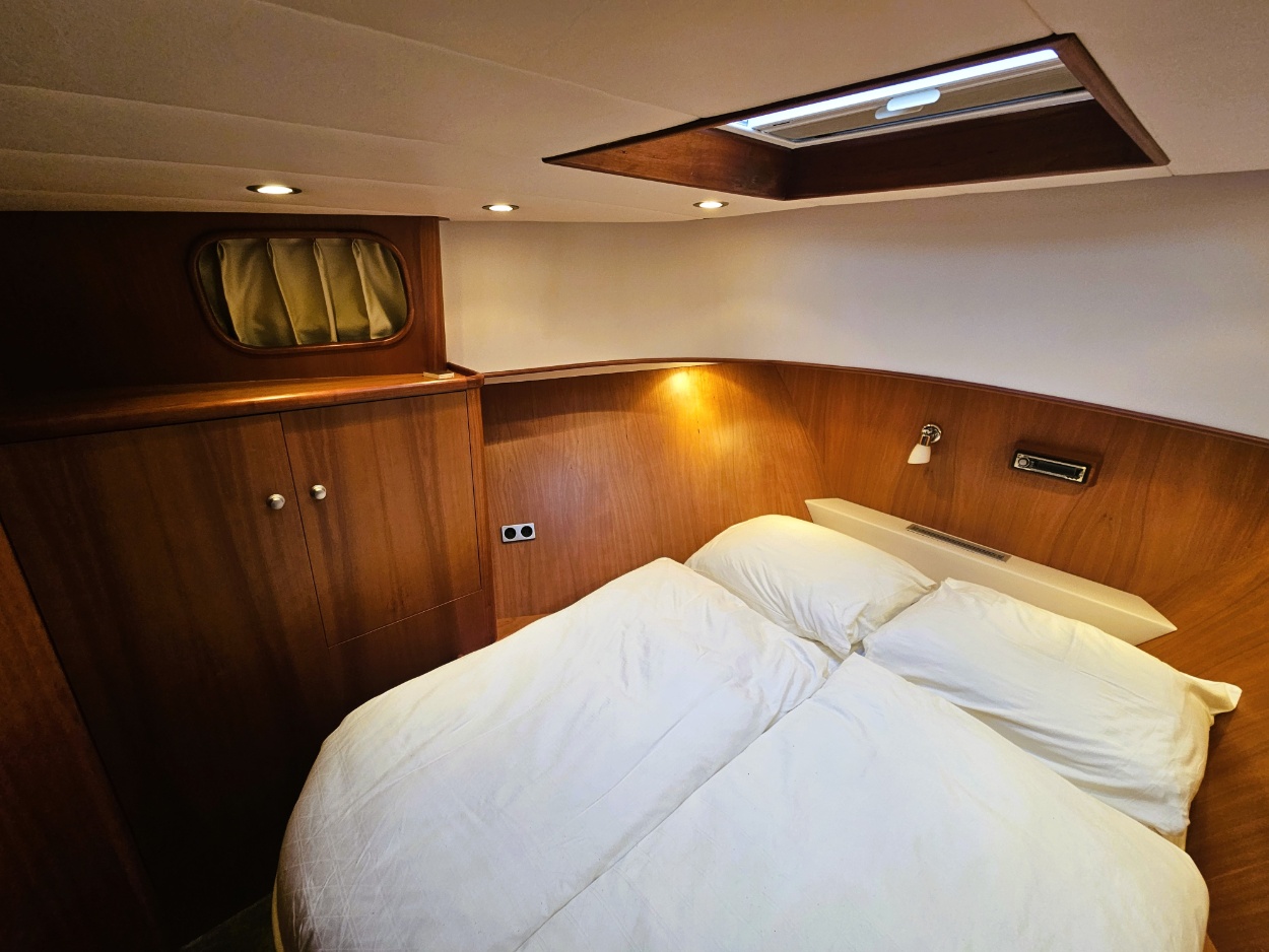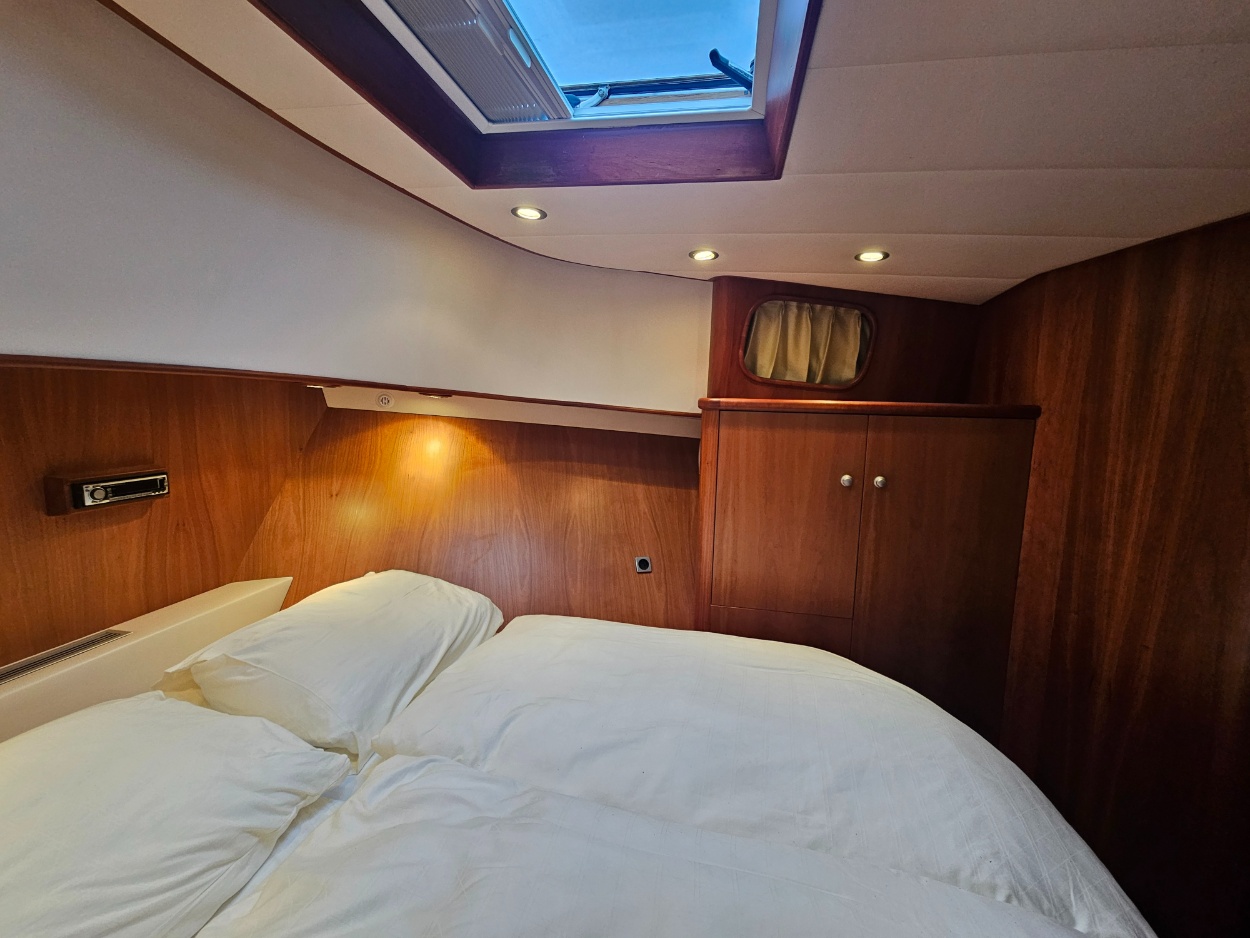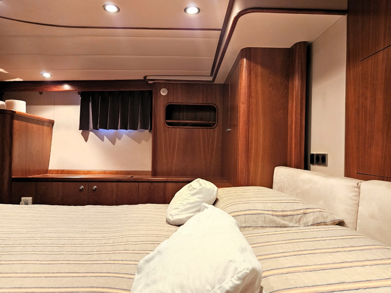 Het schip is zeer compleet uitgerust met onder andere een hydraulische boeg- en hekschroef, airconditioning, centrale verwarming (CV), een ingebouwd luchtontvochtigingssysteem en een centraal stofzuigsysteem, wat bijdraagt aan optimaal comfort aan boord. De indeling bestaat uit drie hutten, waaronder een ruime eigenaarshut met badkamer en suite, een gastenhut in de boeg en een derde hut met stapelbed. Daarnaast is er een extra gastentoilet aanwezig en beschikt het jacht over een prachtig, hoogwaardig afgewerkt interieur.