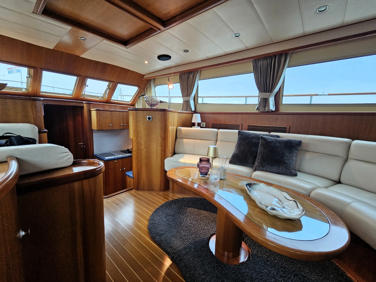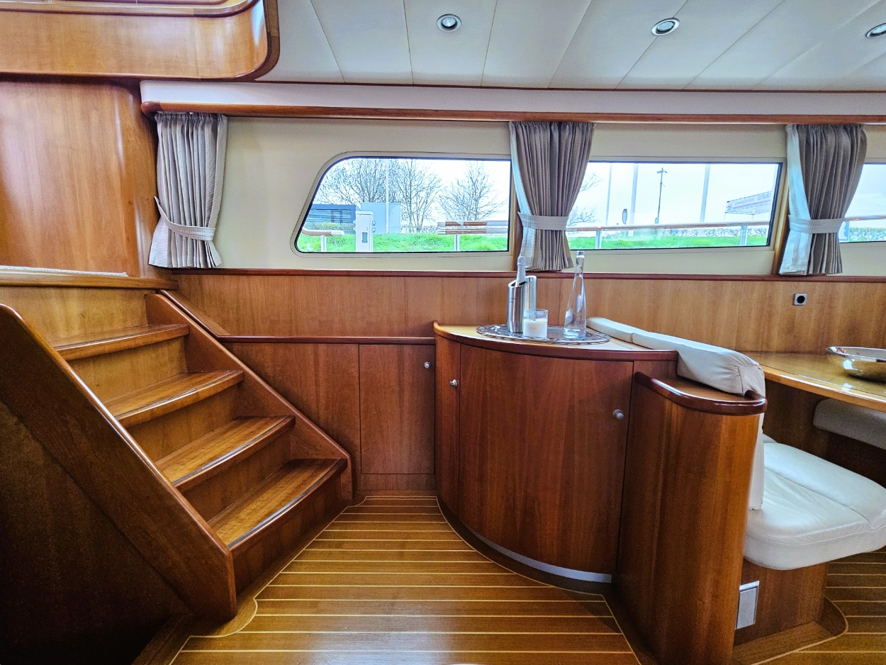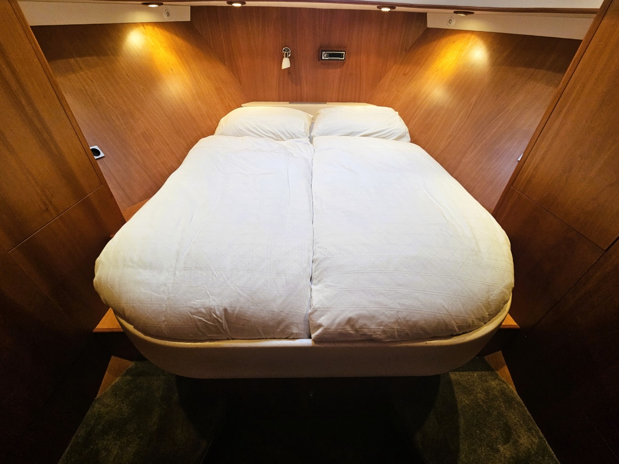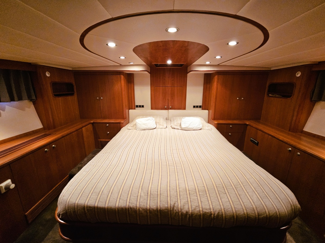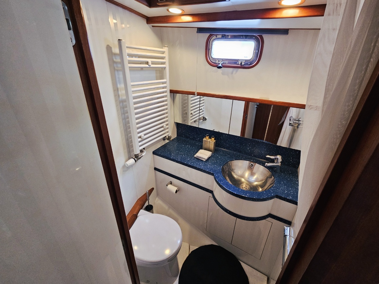 Het schip is zeer compleet uitgerust met onder andere een hydraulische boeg- en hekschroef, airconditioning, centrale verwarming (CV), een ingebouwd luchtontvochtigingssysteem en een centraal stofzuigsysteem, wat bijdraagt aan optimaal comfort aan boord. De indeling bestaat uit drie hutten, waaronder een ruime eigenaarshut met badkamer en suite, een gastenhut in de boeg en een derde hut met stapelbed. Daarnaast is er een extra gastentoilet aanwezig en beschikt het jacht over een prachtig, hoogwaardig afgewerkt interieur.
