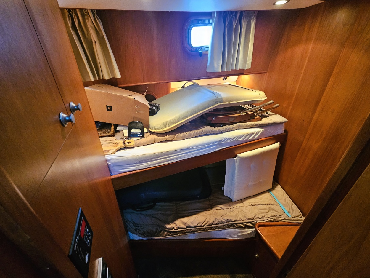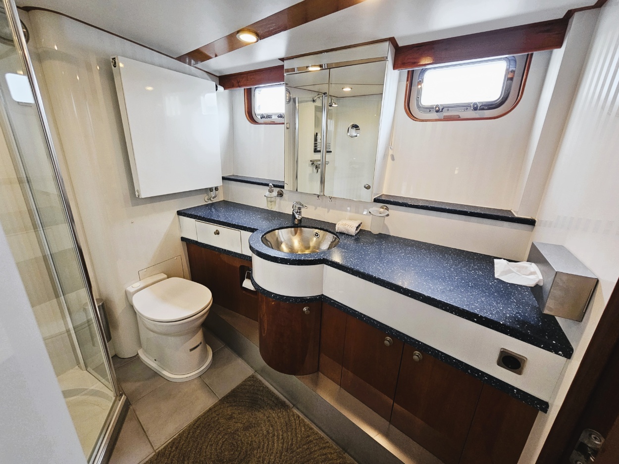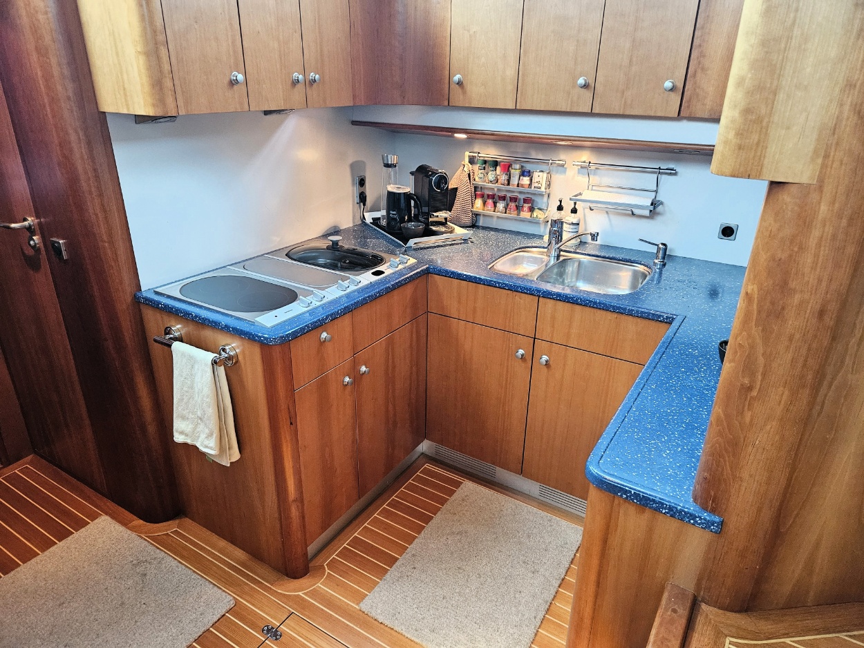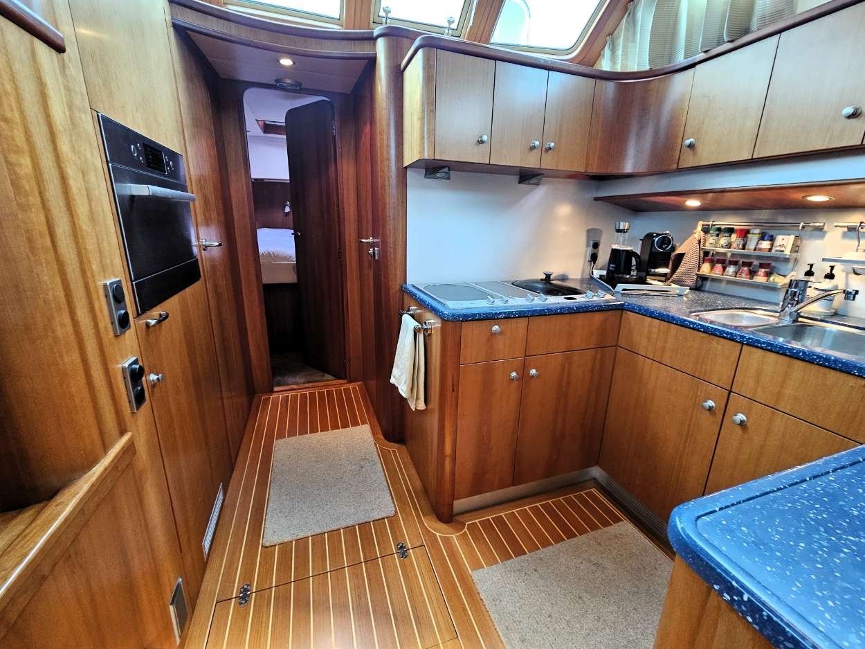 Het schip is zeer compleet uitgerust met onder andere een hydraulische boeg- en hekschroef, airconditioning, centrale verwarming (CV), een ingebouwd luchtontvochtigingssysteem en een centraal stofzuigsysteem, wat bijdraagt aan optimaal comfort aan boord. De indeling bestaat uit drie hutten, waaronder een ruime eigenaarshut met badkamer en suite, een gastenhut in de boeg en een derde hut met stapelbed. Daarnaast is er een extra gastentoilet aanwezig en beschikt het jacht over een prachtig, hoogwaardig afgewerkt interieur.