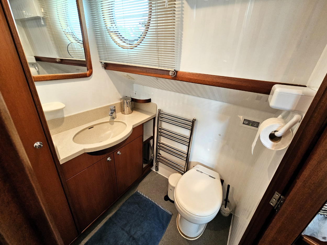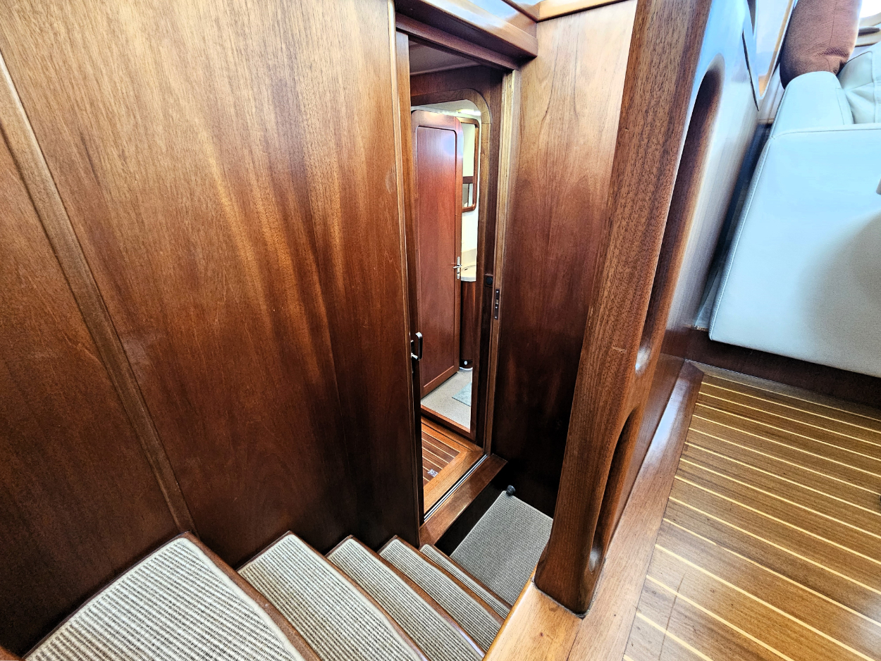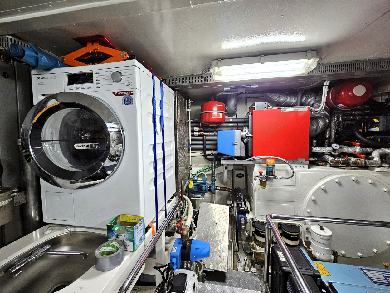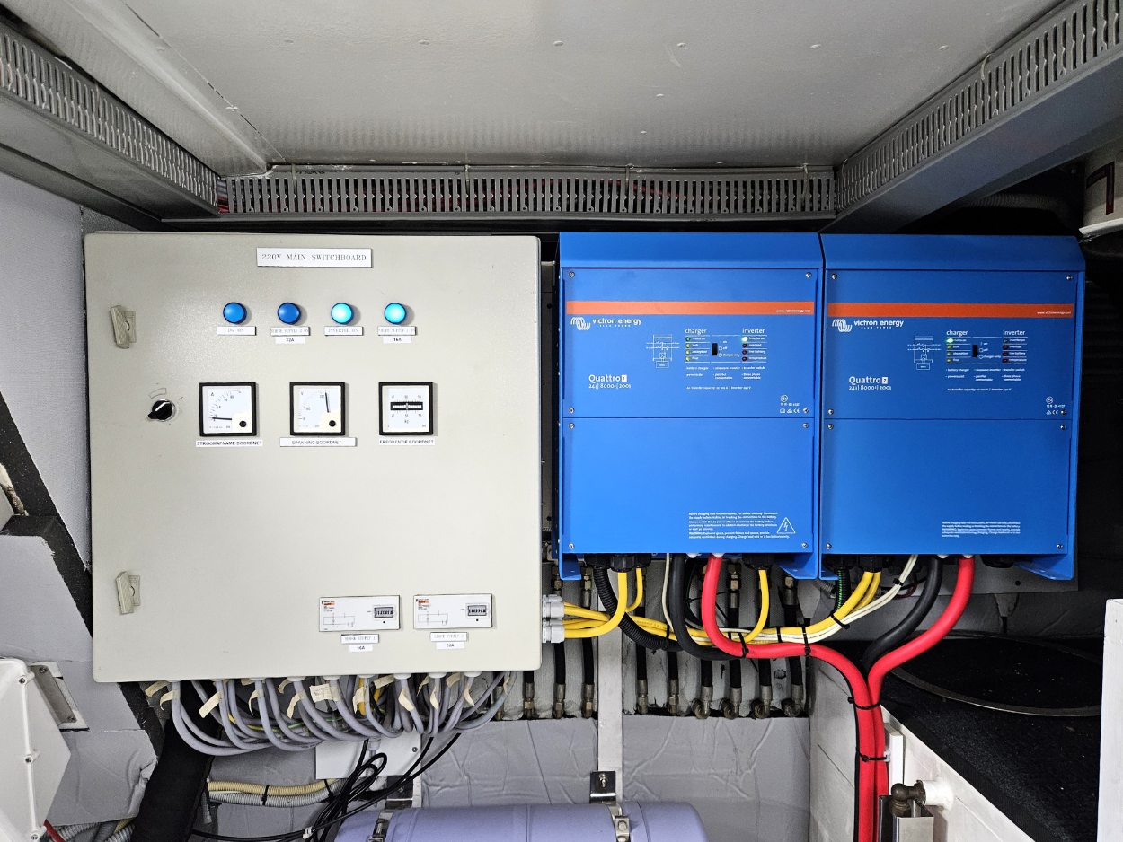 Aan boord vindt u twee ruime hutten met elk een eigen badkamer, een stijlvol teakhouten interieur en een uitstekend uitgeruste kombuis met onder andere een inductiekookplaat, oven, grote koelkast en vriezer, plus een Miele was-droogcombinatie. Dankzij centrale verwarming, airconditioning, dubbel glas en een eigen internetsysteem is het comfort vergelijkbaar met dat van een luxe appartement. Ook buiten is gedacht aan gemak, met kraan voor de bijboot, ruim zwemplatform en een teak achterdek met fijne zitgelegenheid.