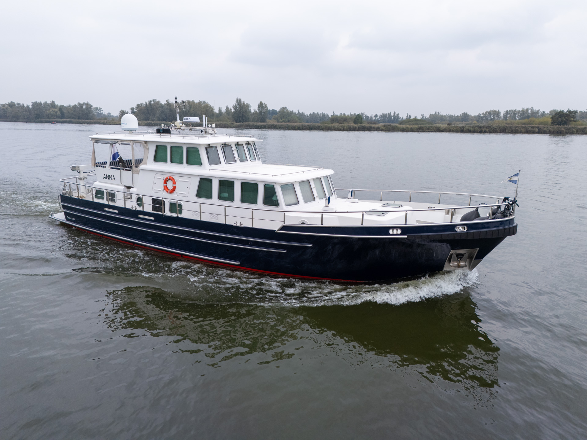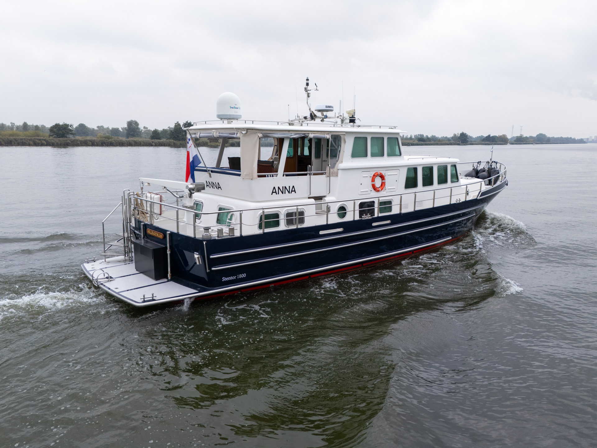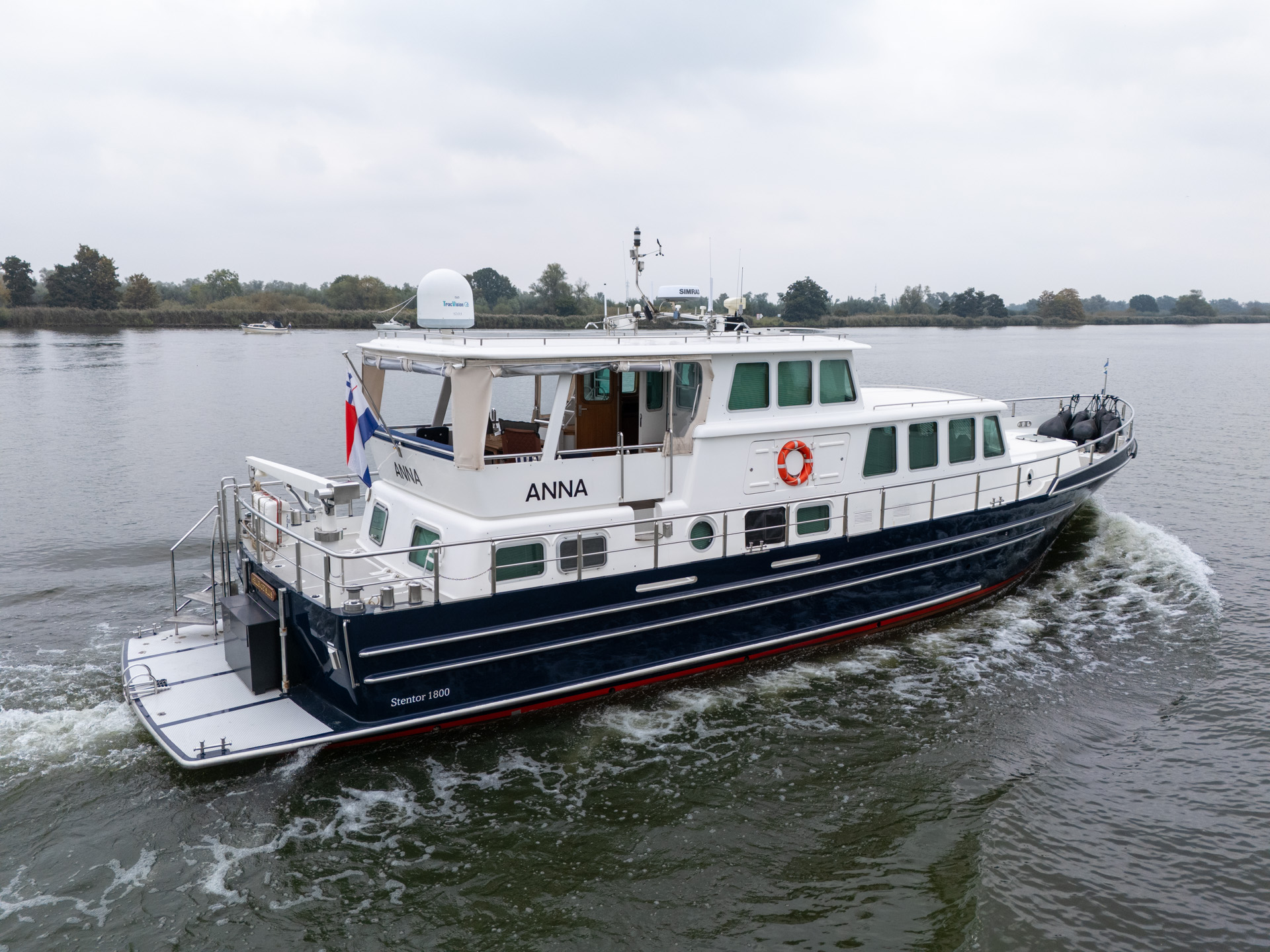 De Stentor 1800 ANNA is een degelijk gebouwd motorjacht, ontworpen door Vripack Naval Architecten. Met een lengte van 18,60 meter, CE-A certificering en een rondspant stalen romp is dit schip geschikt voor zowel comfortabel wonen aan boord als lange vaartochten. Het jacht is in 2003 gebouwd en heeft in 2021/2022 een uitgebreide refit ondergaan, waarbij onder meer de volledige elektrische installatie, navigatieapparatuur en diverse systemen zijn vernieuwd.