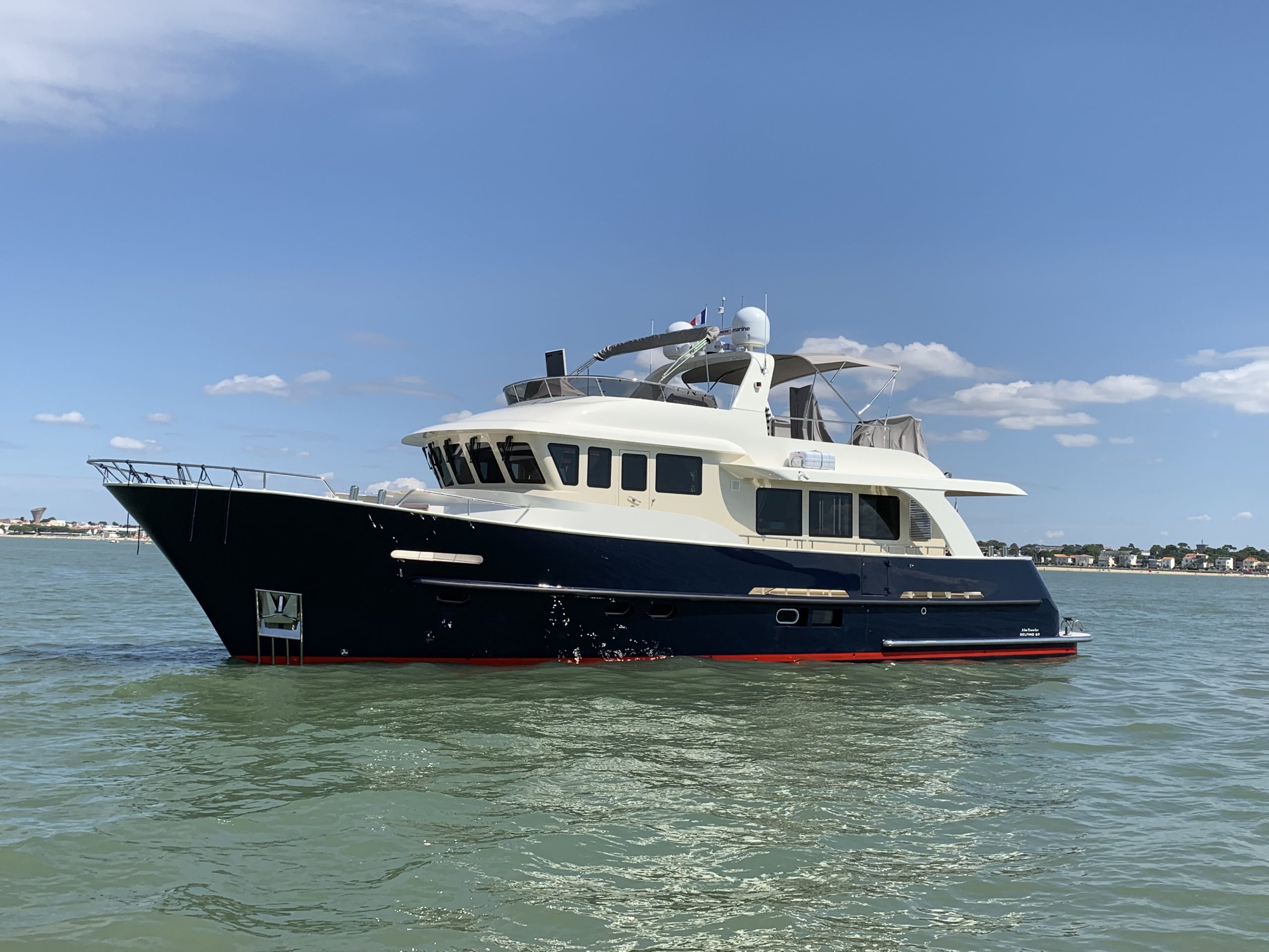 Technisch is deze Delfino 60 van topklasse: aangedreven door twee Vetus Deutz 6.210 motoren, uitgerust met stabilisatoren, boeg- en hekschroef, een Schenker watermaker (100 L/h), onderwaterverlichting, camerasysteem, wifi met externe antenne en een generator. Elk detail getuigt van aandacht, comfort en kwaliteit — een jacht dat luxe, techniek en zeewaardigheid perfect combineert. Het jacht wordt aangeboden met een vraagprijs exclusief btw.